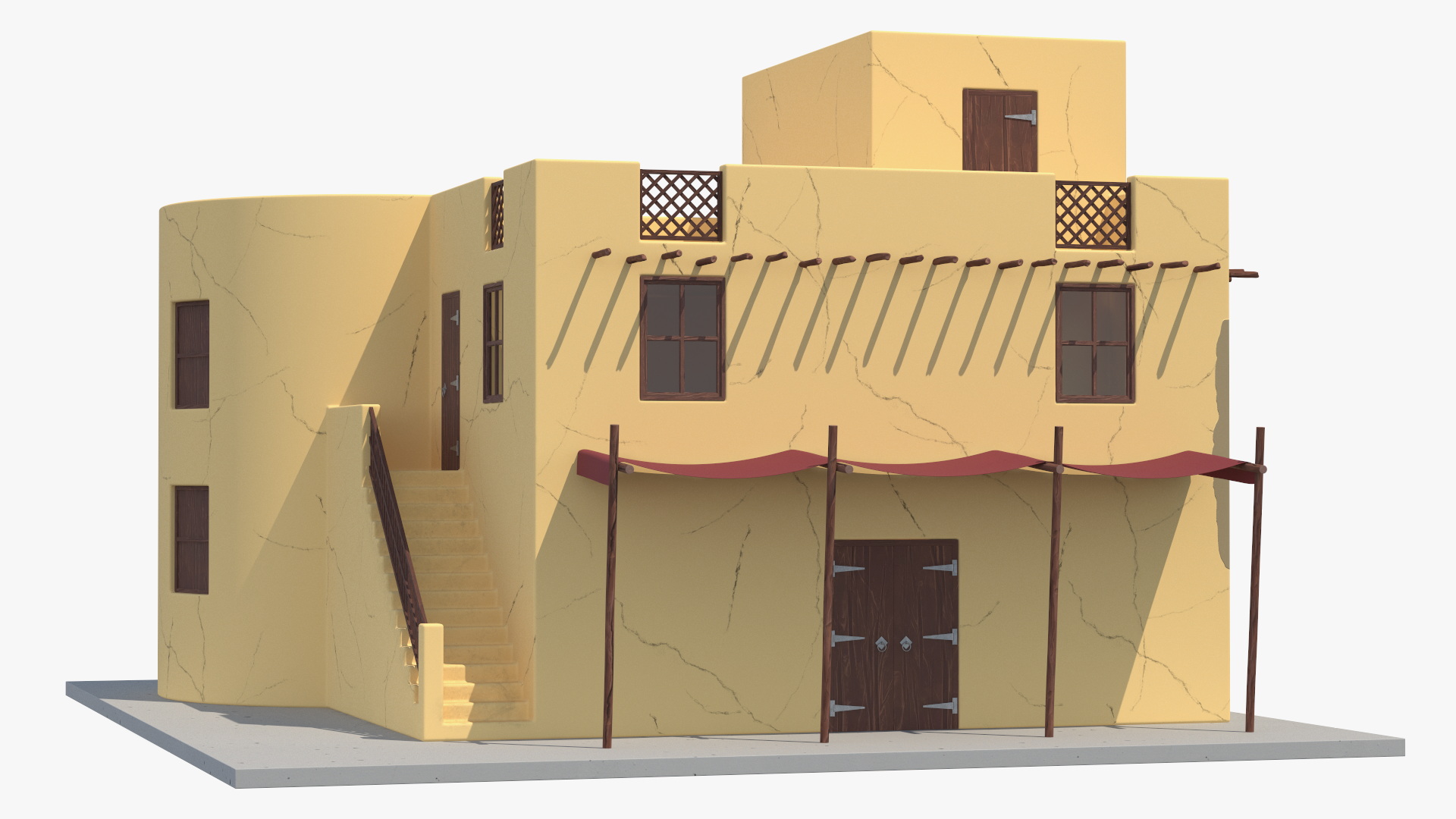 Cartoon Arab House with Circular Construction is a 3d model of a stylized residential building inspired by traditional Arab architecture, featuring a distinct circular shape that adds a unique cultural touch to any scene or project.