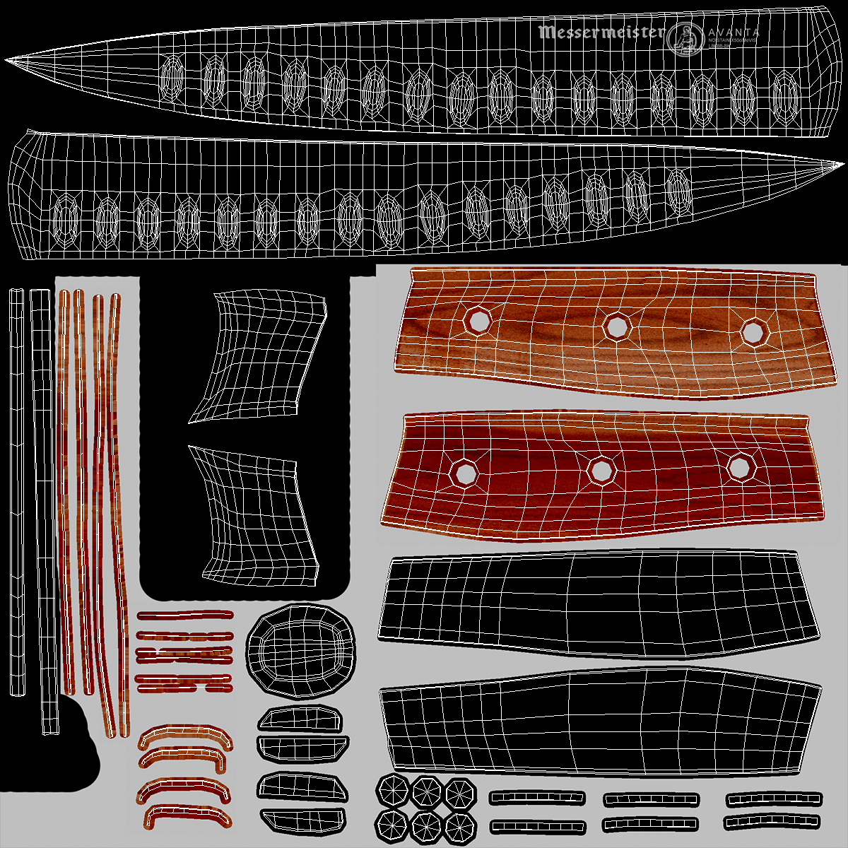 All textures and materials are included and mapped. (All colors can be easily modified.)