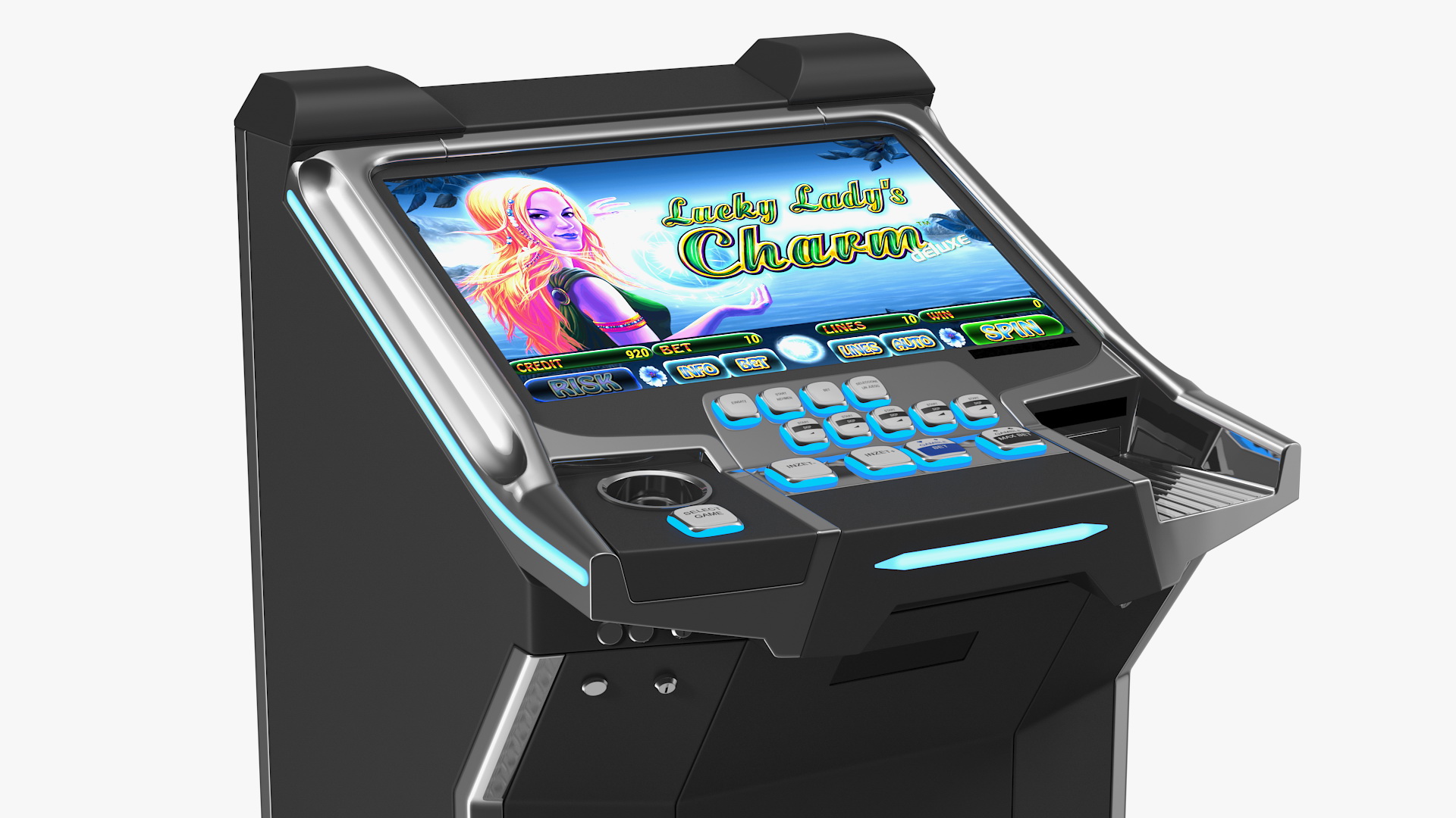 Control console post part of entertainment gaming machine typically installed in casino, public businesses, restaurants and bars.