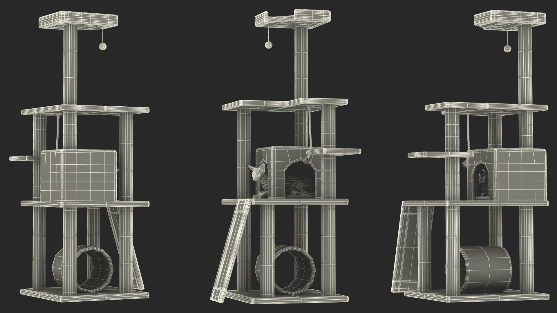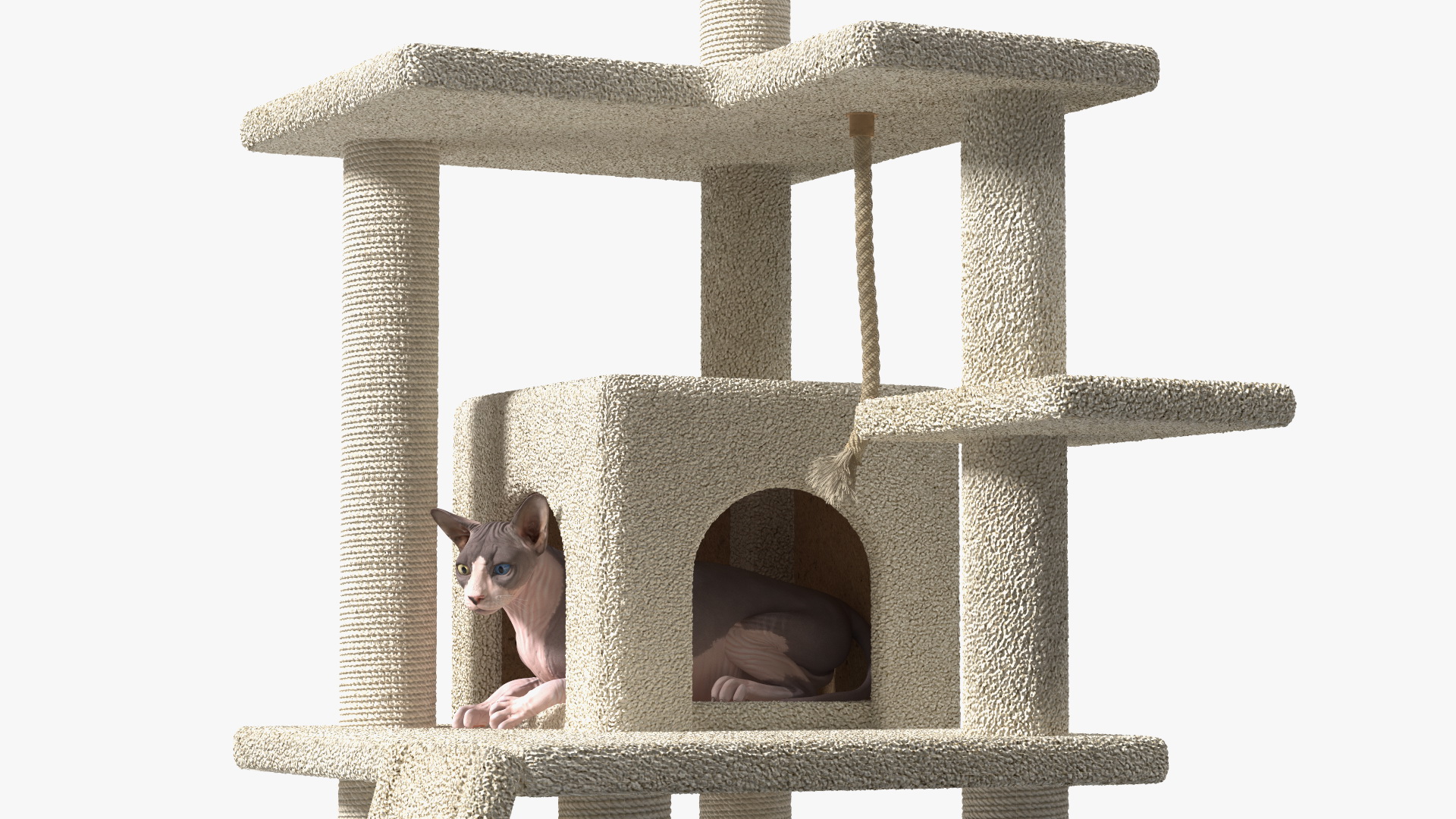 Cat Tree 5-Level with Cat is a high quality, photo real 3d model that will enhance detail and realism to any of your rendering projects. The model has a fully textured, detailed design that allows for close-up renders, and was originally modeled in 3ds Max 2020 and rendered with V-Ray. Renders have no postprocessing!