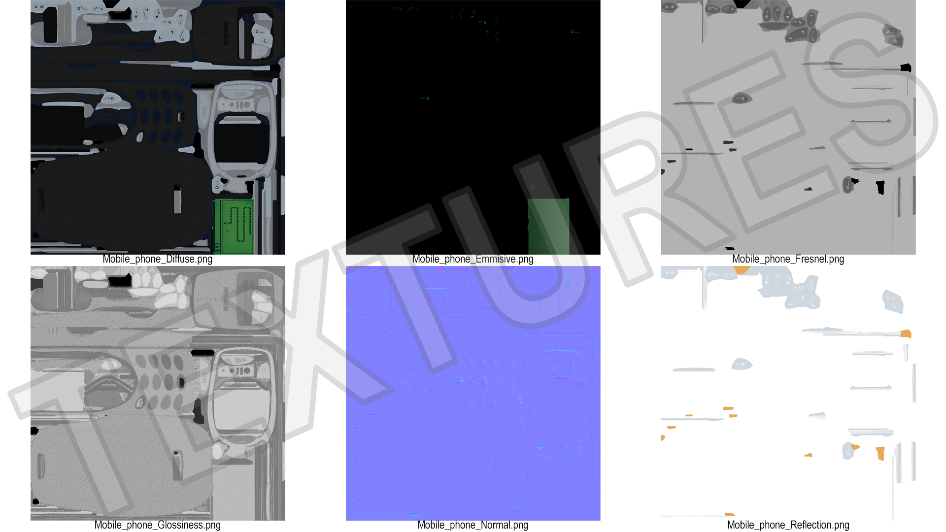 All textures and materials are included and mapped. (All colors can be easily modified.)
