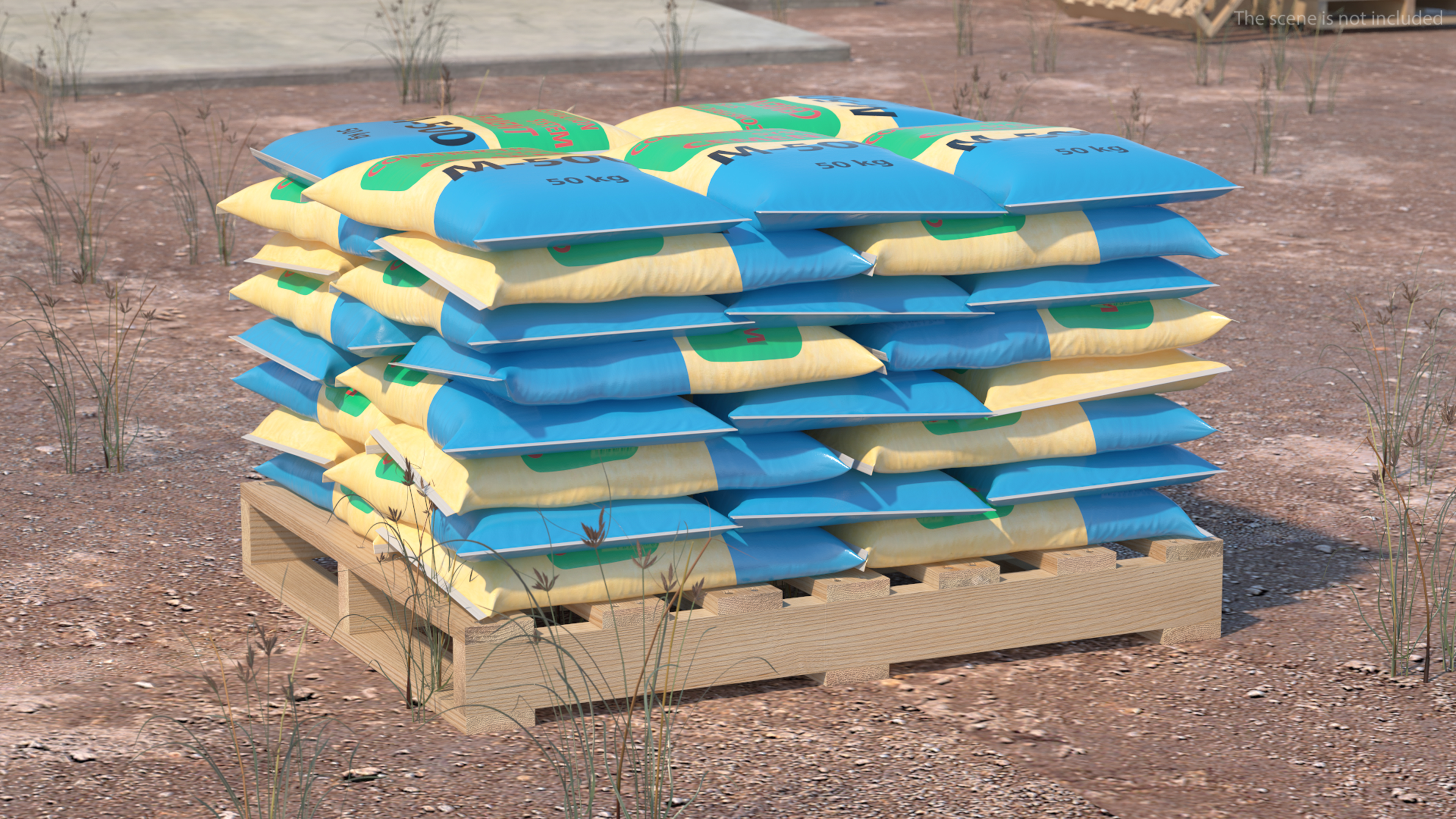 Cement Bags on Wooden Pallet is a three-dimensional model of wooden pallet with cement packages set (collection) of cement material bags (sacks), which contains cement type powder material.