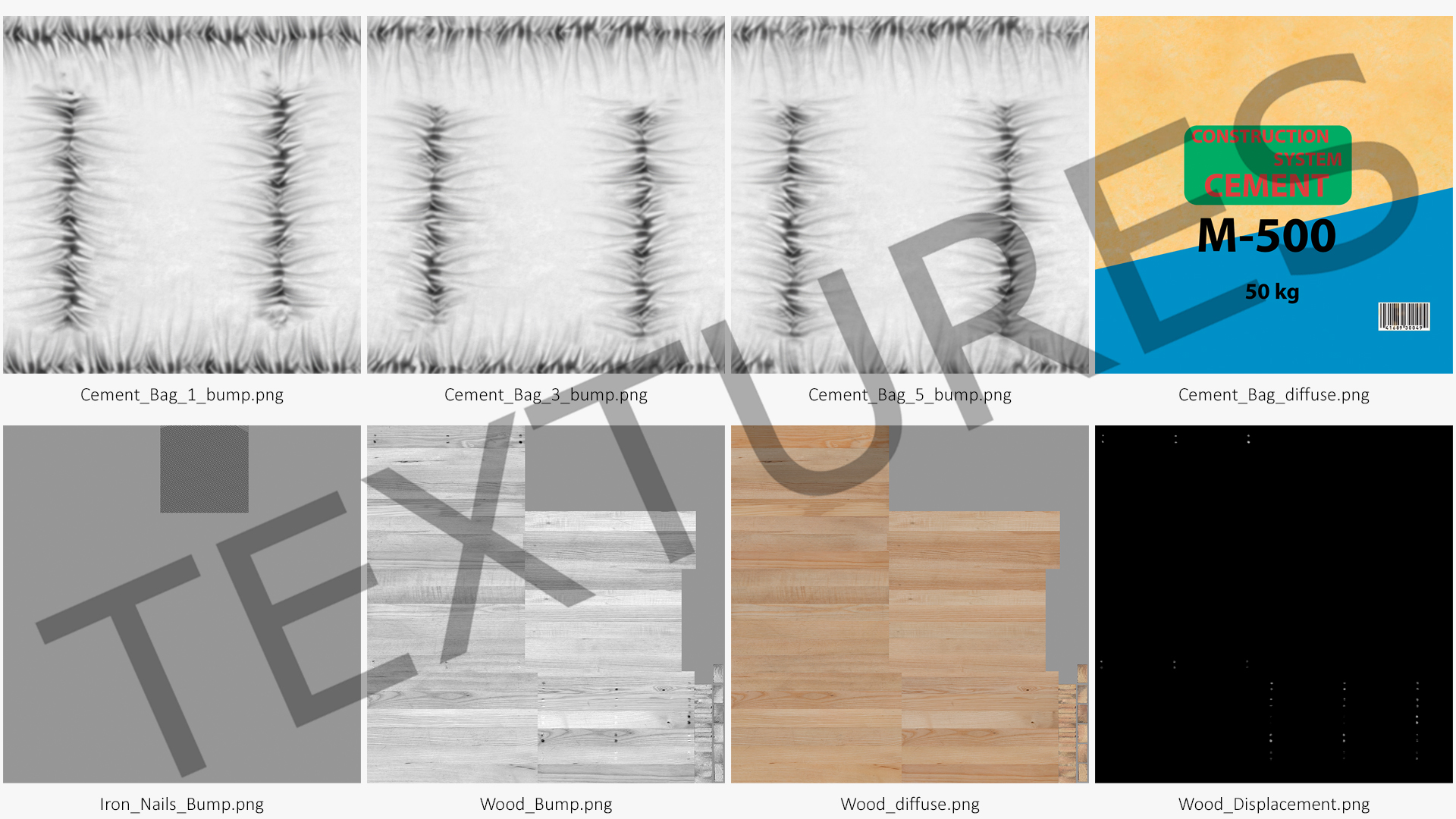 Cement Bags on Wooden Pallet is a high quality, photo real 3d model that will enhance detail and realism to any of your rendering projects. The model has a fully textured, detailed design that allows for close-up renders, and was originally modeled in 3ds Max 2020 and rendered with V-Ray. Renders have no postprocessing!