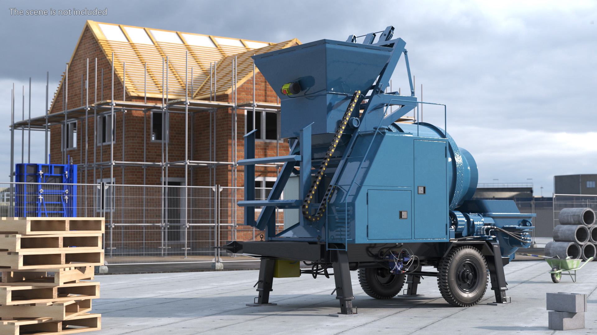 Constructed with high accuracy, this model captures key components such as the mixing drum, electric motor, hydraulic pump system, and the control panel. The design highlights the machine's durability and functionality, reflecting its ability to streamline concrete handling tasks on construction sites. With realistic detailing and proportions, the model is ideal for visual representations of modern construction equipment.