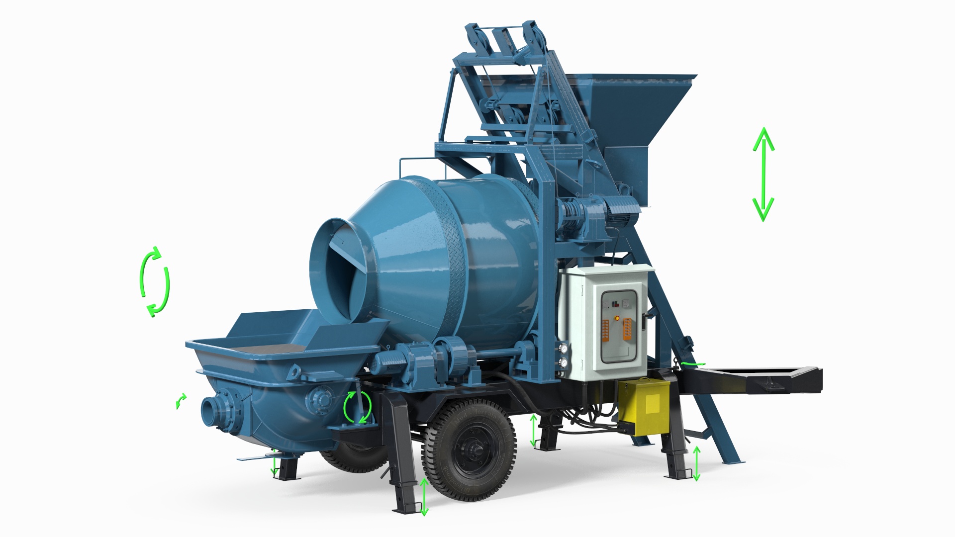 Cement Pump Mixer with Electric Engine Rigged is a 3d model of a cement mixing and pumping machine, powered by an electric engine, and fully rigged for dynamic movement in construction visualizations.