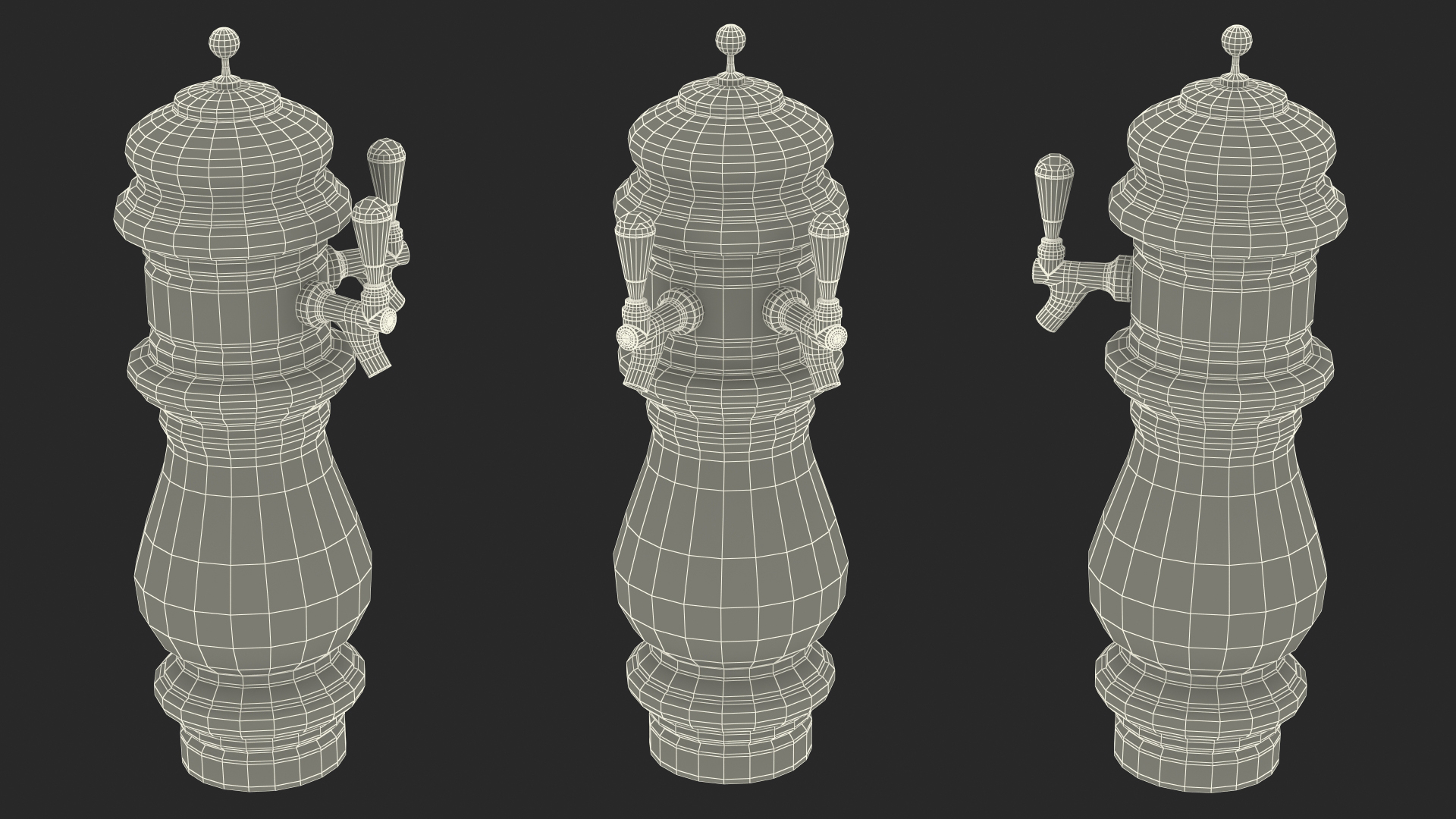 Ceramic Double Faucet Draft Beer Tower is a high quality, photo real 3d model that will enhance detail and realism to any of your rendering projects. The model has a fully textured, detailed design that allows for close-up renders, and was originally modeled in 3ds Max 2020 and rendered with V-Ray. Renders have no postprocessing!