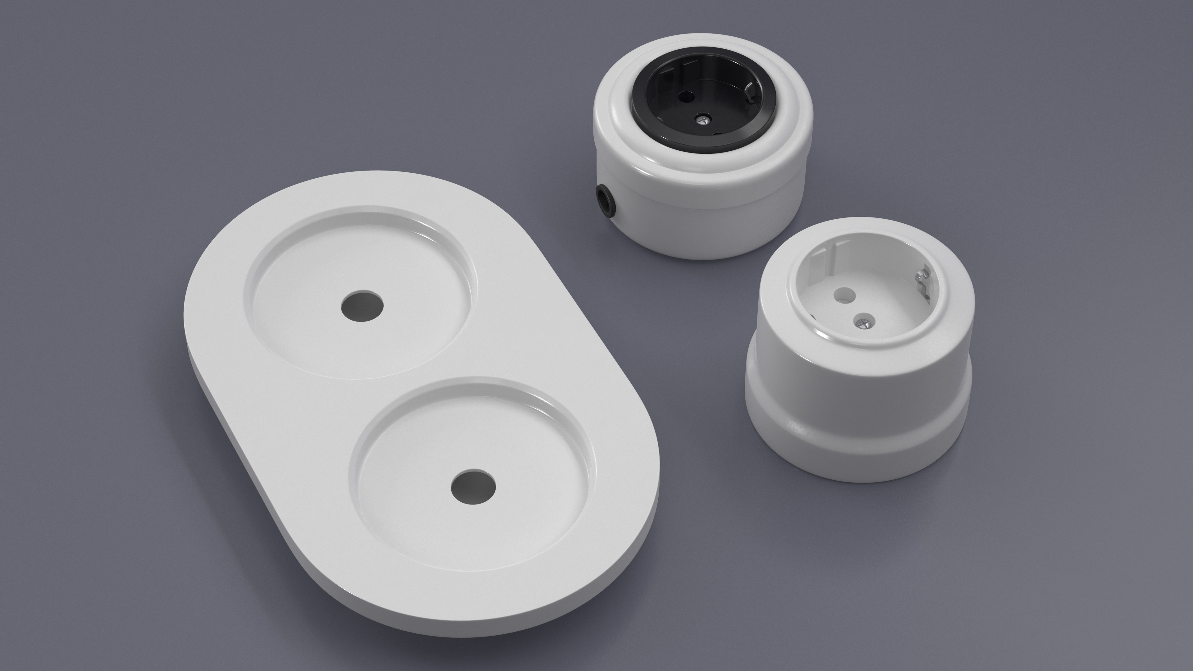 Ceramic Retro Sockets White is a 3d model of electrical sockets that are designed to resemble vintage or retro styles, with a ceramic construction.