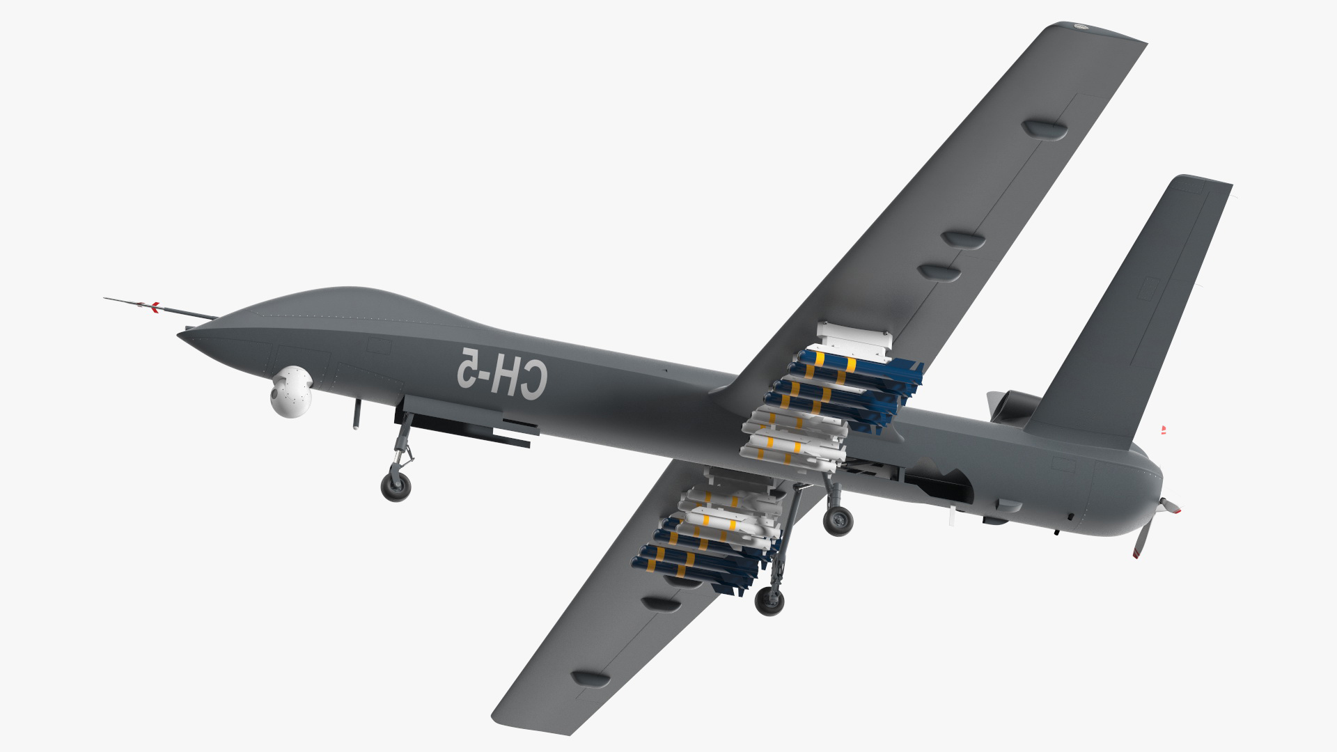 CH-5 Rainbow UAV Armed Rigged is a 3d model of an attack and reconnaissance Unmanned Aerial Vehicle (UCAV) armed with missiles.