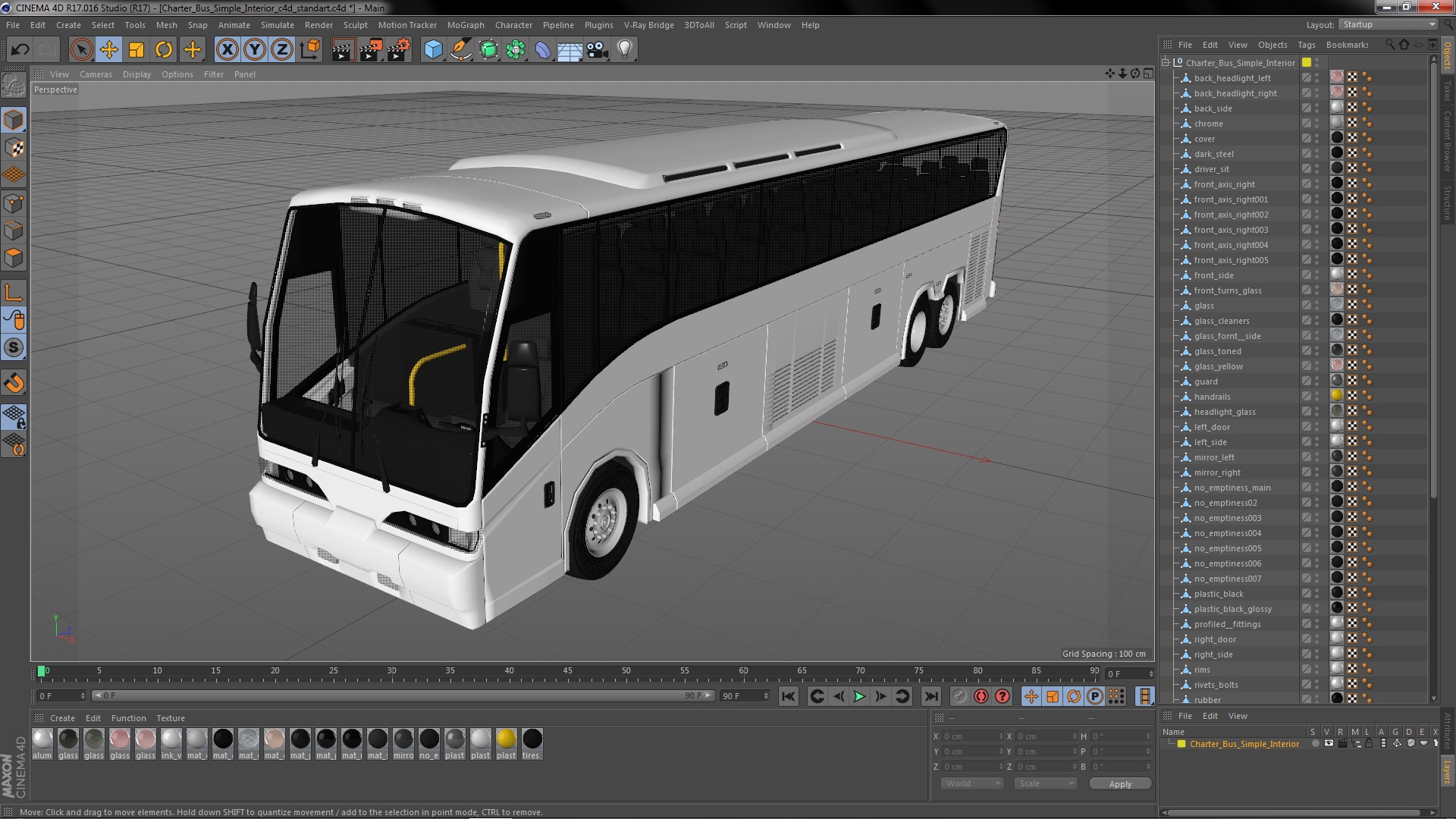 Charter Bus Simple Interior is a three-dimensional model of a large vehicle used for a long distance service, but not a within of single urban region.