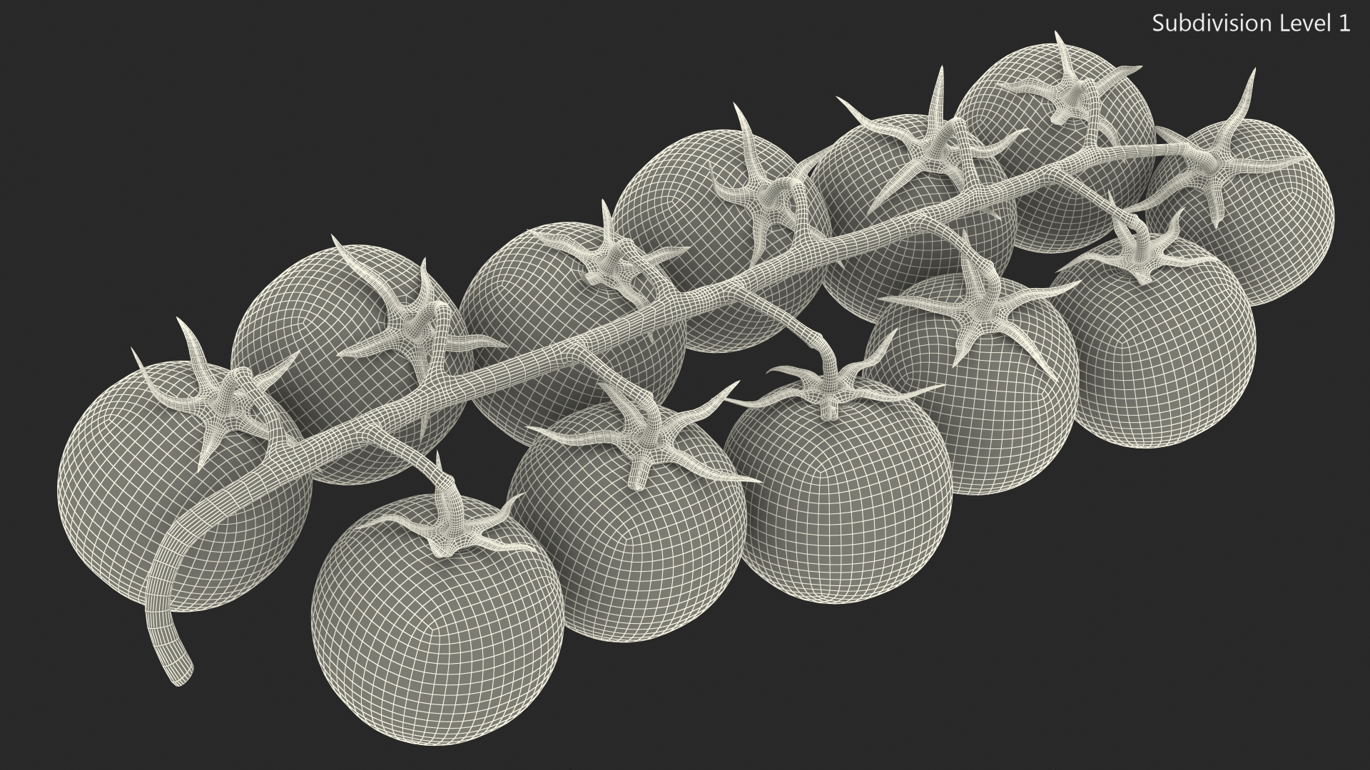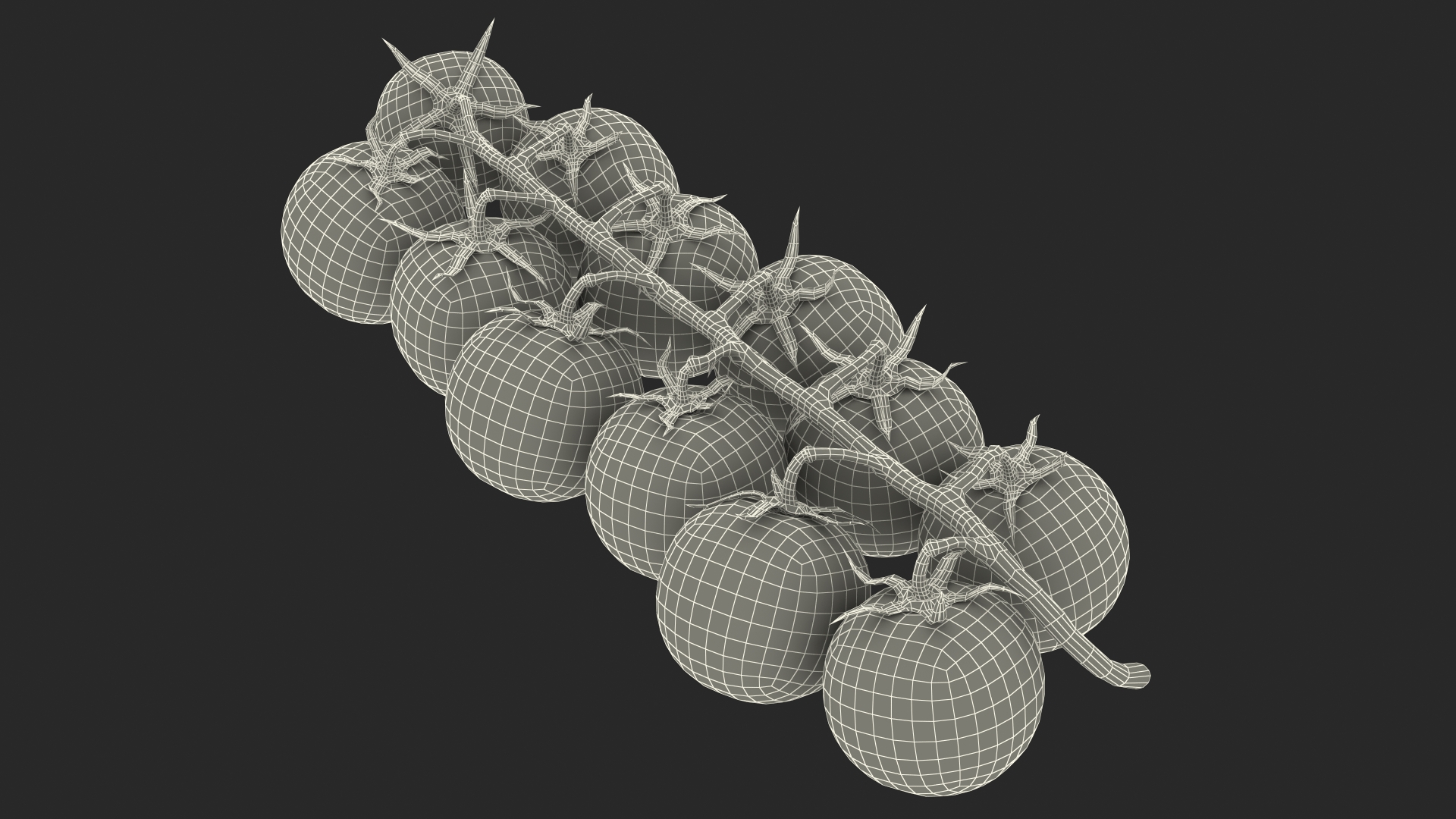 Cherry Tomatoes on the Vine is a three-dimensional model of a sweet, popular, tasty snack tomato fruit with improved ripening time and shelf life.