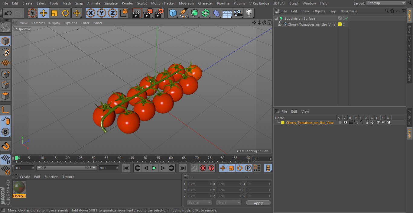 Cherry Tomatoes on the Vine is a high quality, photo real 3d model that will enhance detail and realism to any of your rendering projects. The model has a fully textured, detailed design that allows for close-up renders, and was originally modeled in 3ds Max 2020 and rendered with V-Ray. Renders have no postprocessing!