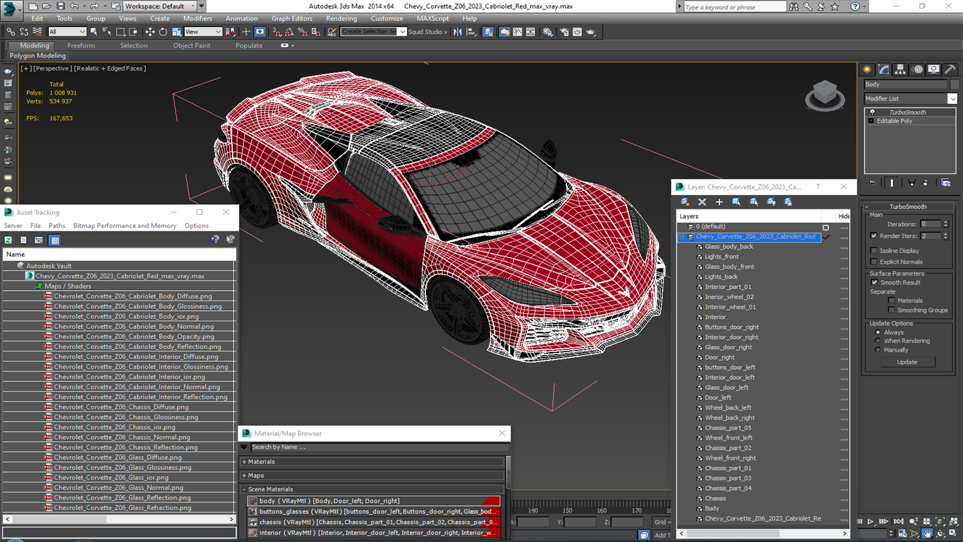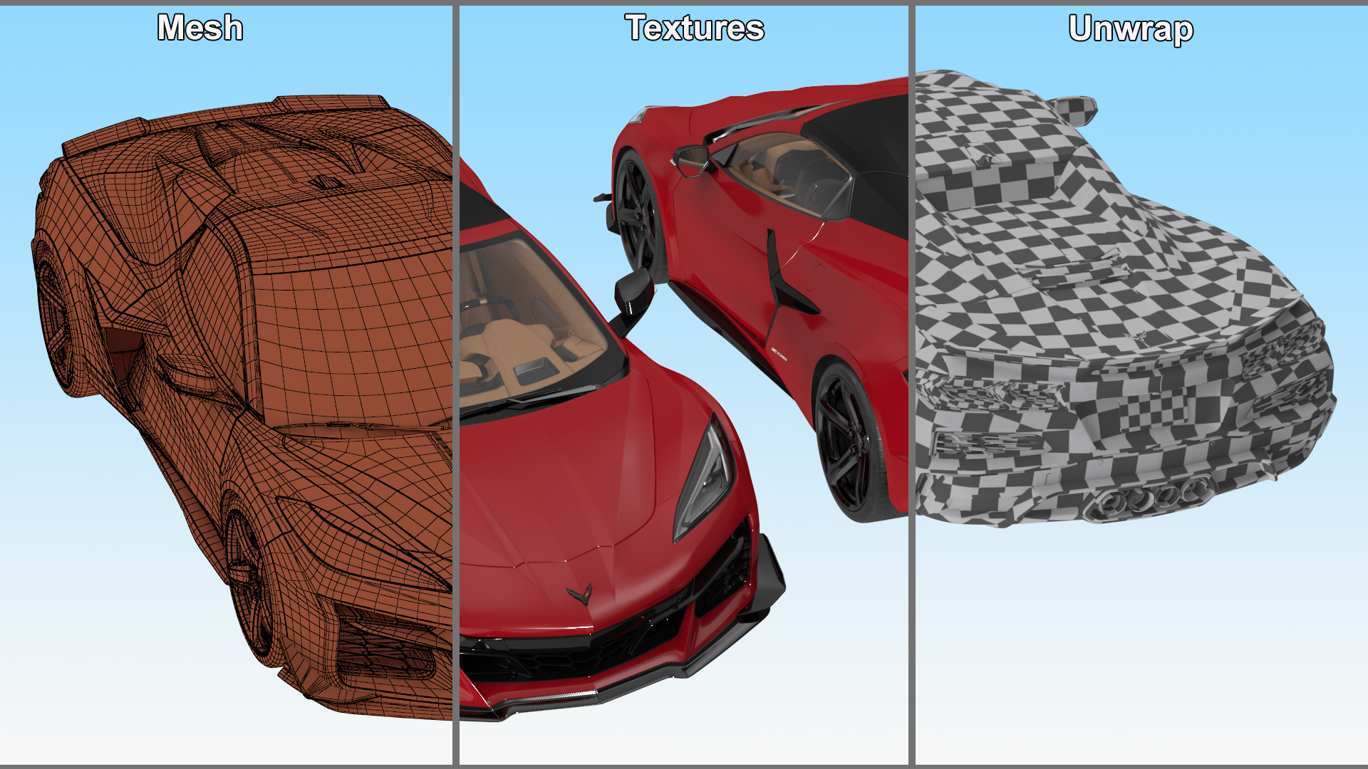 Chevy Corvette Z06 2023 Cabriolet Red is a high quality, photo real 3d model that will enhance detail and realism to any of your rendering projects. The model has a fully textured, detailed design that allows for close-up renders, and was originally modeled in 3ds Max 2020 and rendered with V-Ray. Renders have no postprocessing!