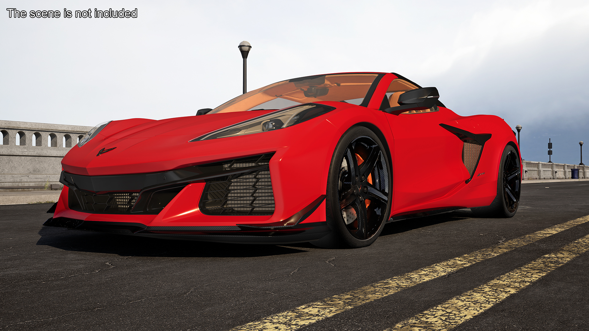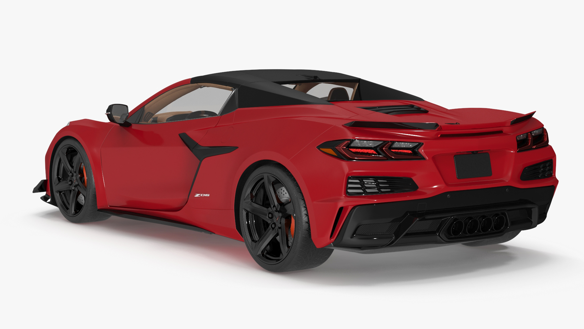 Chevy Corvette Z06 2023 Cabriolet Red is a 3D model of American two-door, two-seater luxury sport car with large and comfortable passenger compartment.