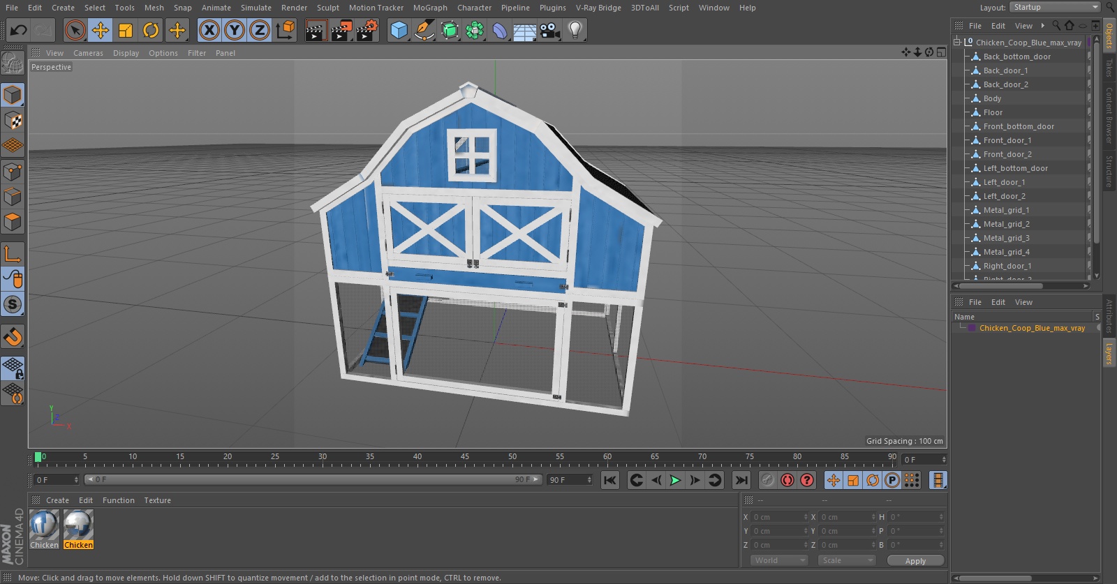 Chicken Coop Blue is a high quality, photo real 3d model that will enhance detail and realism to any of your rendering projects. The model has a fully textured, detailed design that allows for close-up renders, and was originally modeled in 3ds Max 2020 and rendered with V-Ray. Renders have no postprocessing!