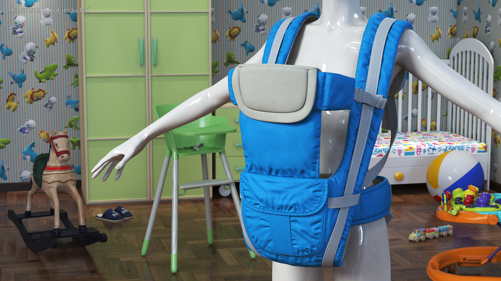 Child Carrier 3 in 1 Blue Straight Position is a three-dimensional model of modern adjustable infant carrier, often referred to as a babycarrier, kangaroo, baby sling, baby backpack or babywearer, which is a specialized baby-carrying device.