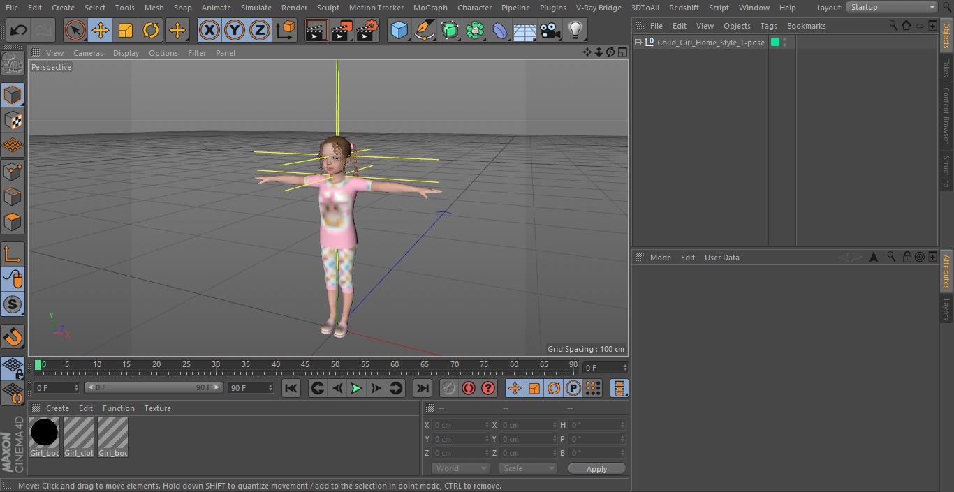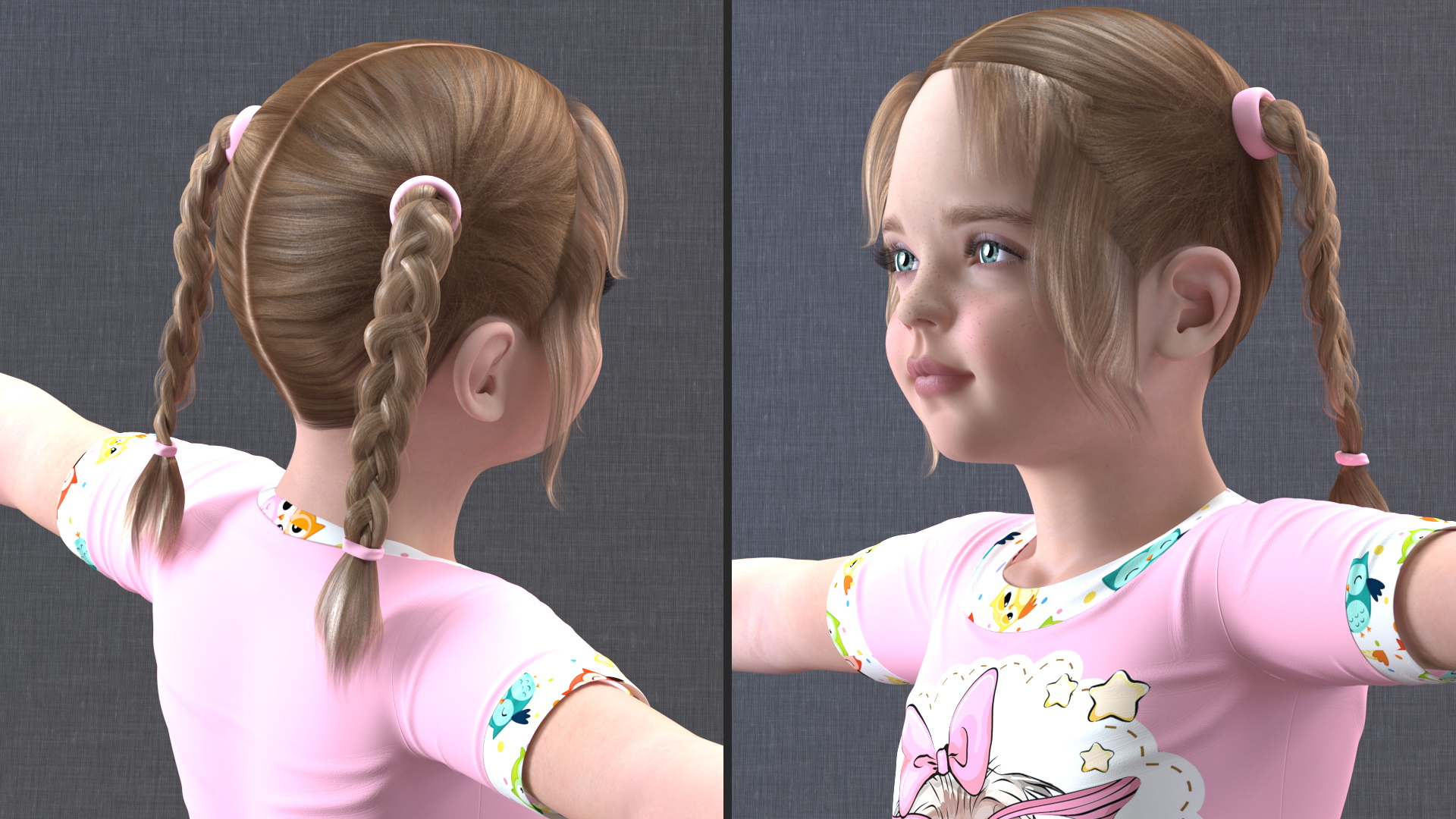 Child Girl Home Style T-pose is a high quality, photo real 3d model that will enhance detail and realism to any of your rendering projects. The model has a fully textured, detailed design that allows for close-up renders, and was originally modeled in 3ds Max 2020 and rendered with V-Ray. Renders have no postprocessing!