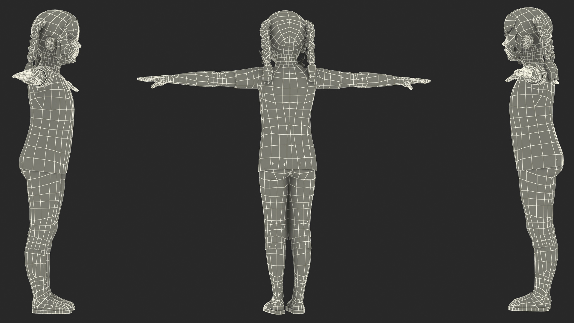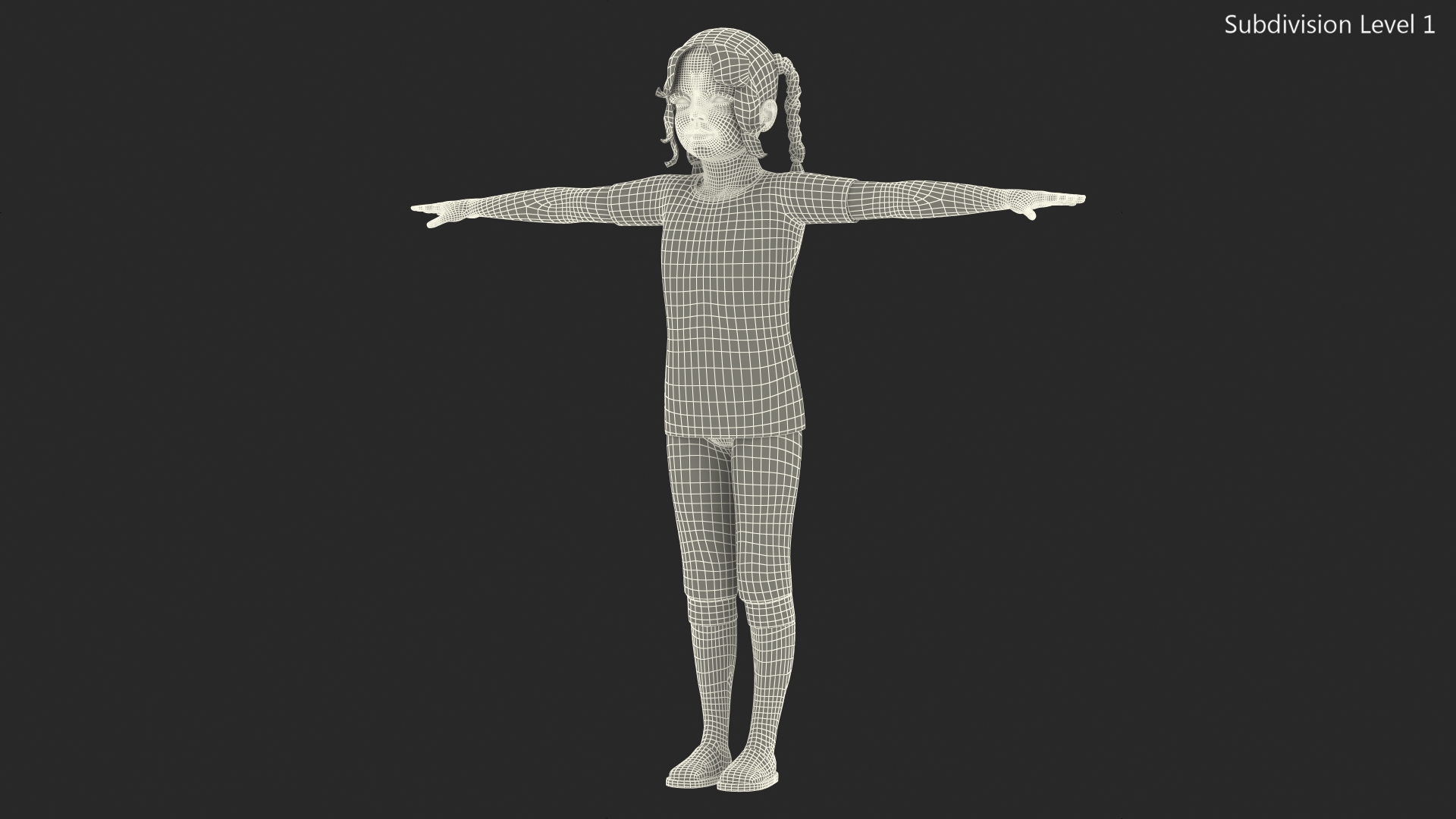 Child Girl Home Style T-pose is a three-dimensional model of a cute kid girl in night-suit pyjamas clothes.