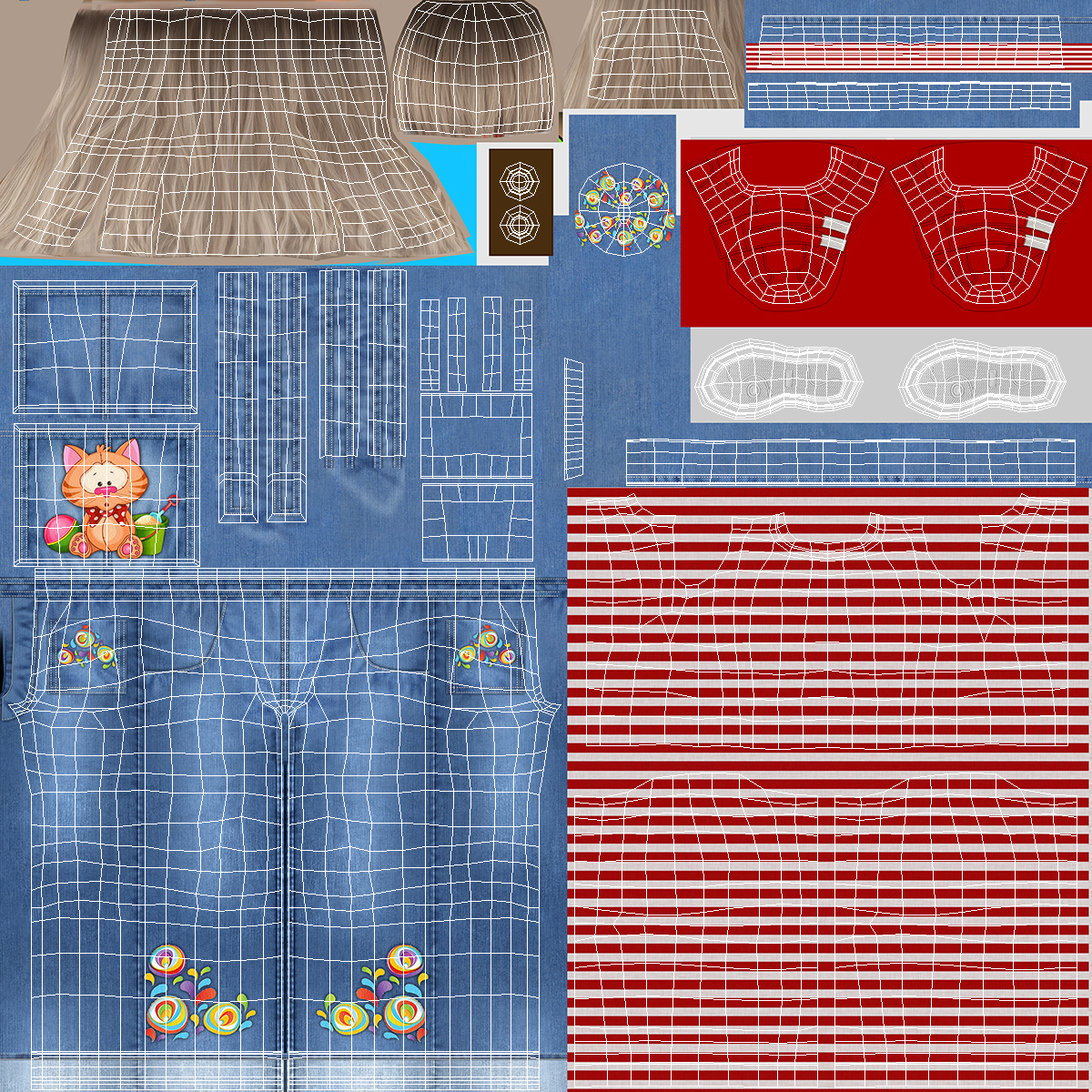 All textures and materials are included and mapped. (All colors can be easily modified.)