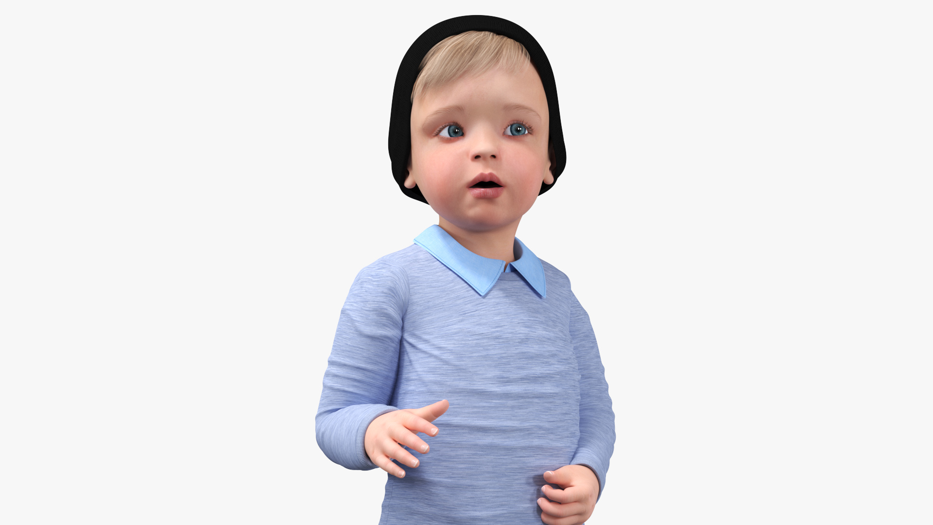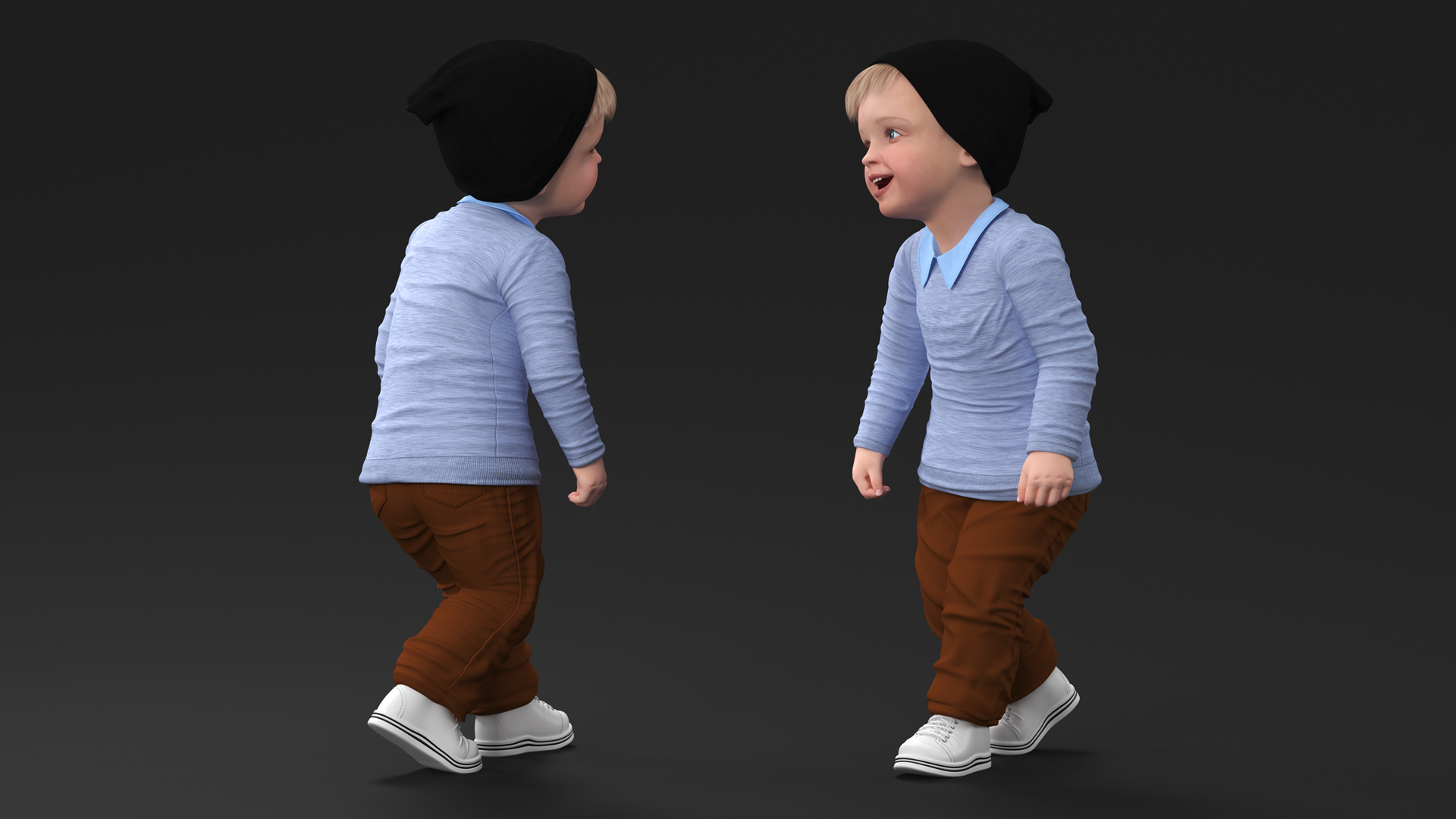 Child in Fall Clothes Rigged is a three-dimensional model of fall clothing set (autumn wear) for a one-year-old baby boy that is designed for male toddler (human baby, little one or small kid who is a human infant in the early stage of life).