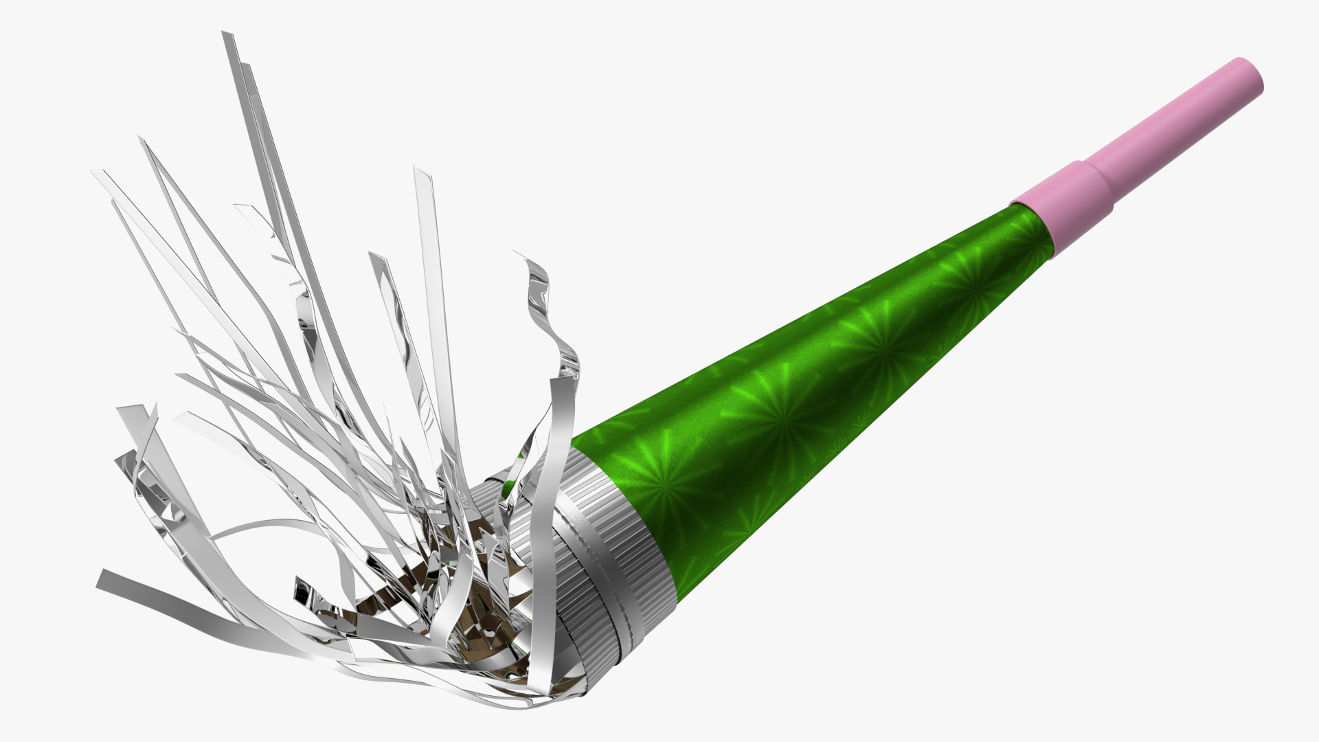 Children Noisemaker Toy Green is a 3D model of foil party blower which is a party horn, and which is a toy children noisemaker.