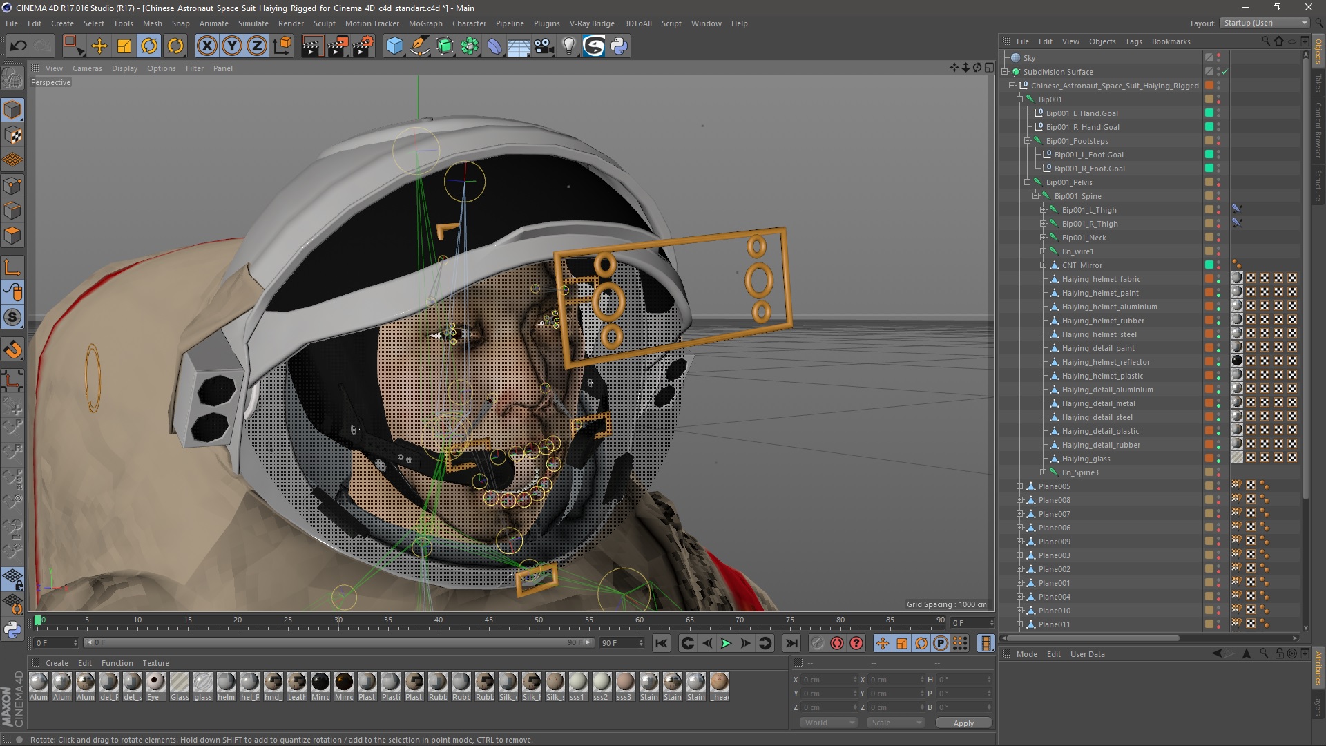 Chinese Astronaut Space Suit Haiying Rigged for Cinema 4D is fully rigged and is ready to be animated in Cinema 4D. You can easily position it the way you need or animate it the way your project requires. See the screenshots to get an idea of how rigging works. The pose of the model on the render images is an example and can be recreated using rig, it is not initially included into the product.