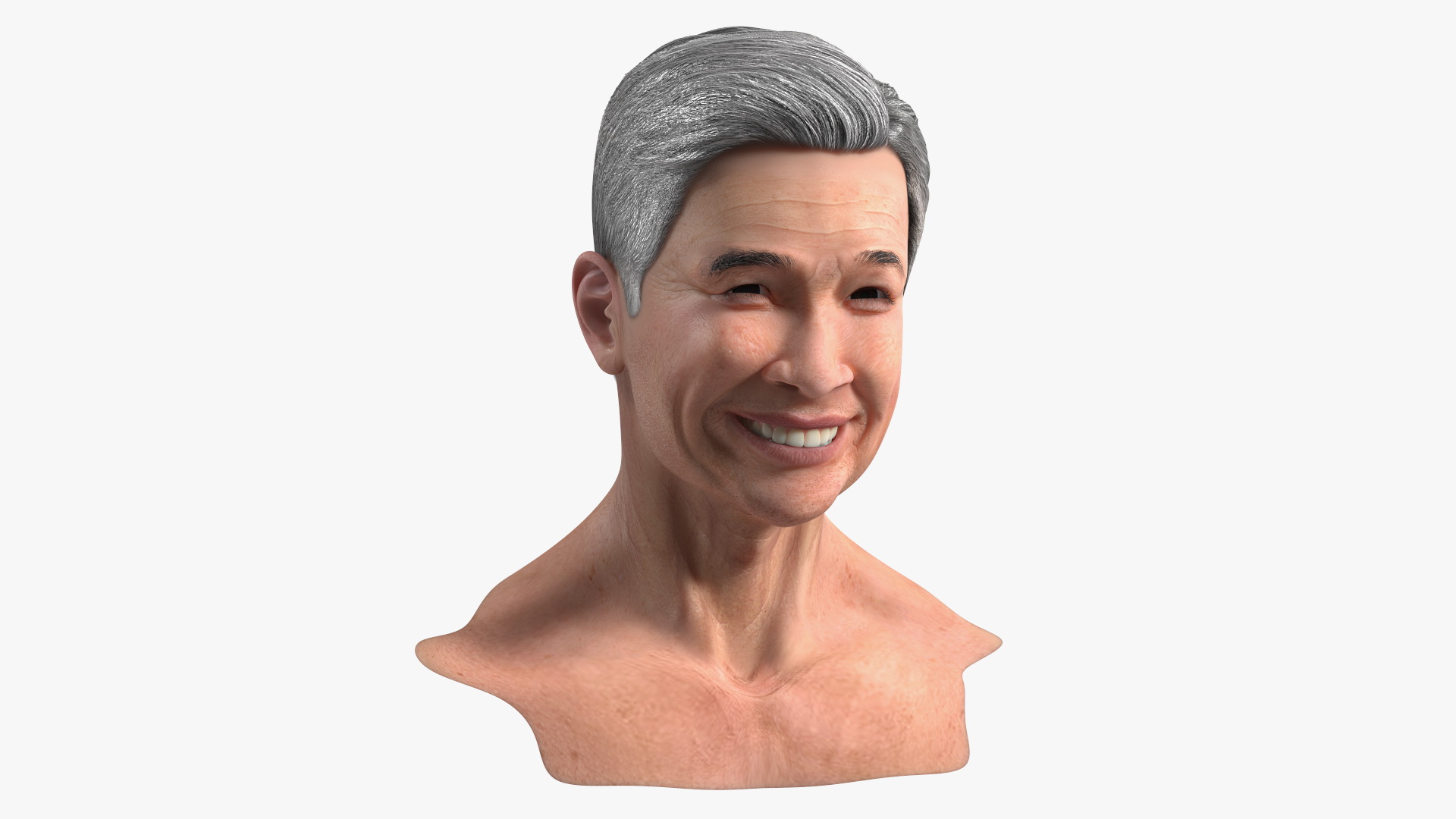 Chinese Elderly Man Head Smiling is a high quality, photo real 3d model that will enhance detail and realism to any of your rendering projects. The model has a fully textured, detailed design that allows for close-up renders, and was originally modeled in 3ds Max 2020 and rendered with V-Ray. Renders have no postprocessing!