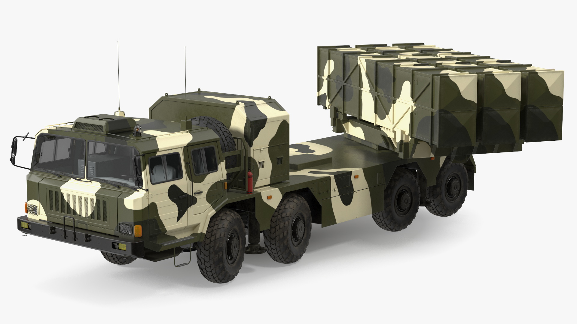 Chinese MLRS WS-2D Green Camouflage Rigged for Maya is fully rigged and is ready to be animated in Maya. You can easily position it the way you need or animate it the way your project requires. See the screenshots to get an idea of how rigging works. The pose of the model on the render images is an example and can be recreated using rig, it is not initially included into the product.