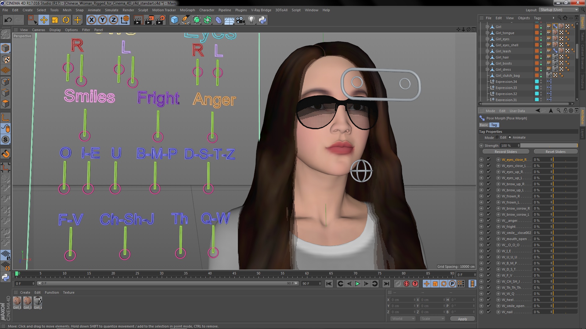 Chinese Woman Rigged for Cinema 4D is fully rigged and is ready to be animated in Cinema 4D. You can easily position it the way you need or animate it the way your project requires. See the screenshots to get an idea of how rigging works. The pose of the model on the render images is an example and can be recreated using rig, it is not initially included into the product.