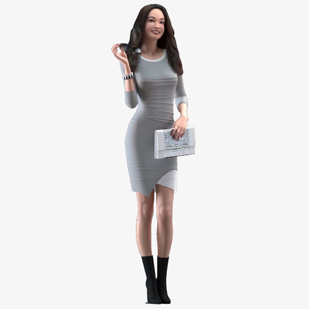 Chinese Woman Rigged is a three-dimensional model of a magnificent, beautiful, lovely, elegant Asian female person with party dress or street fashion casual clothes.