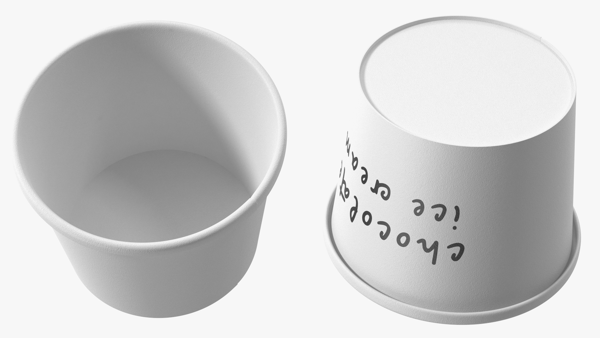Chocolate Ice Cream Cup Empty is a three-dimensional model of small container for a sweet refreshing snack, which is frozen cream dessert in container.