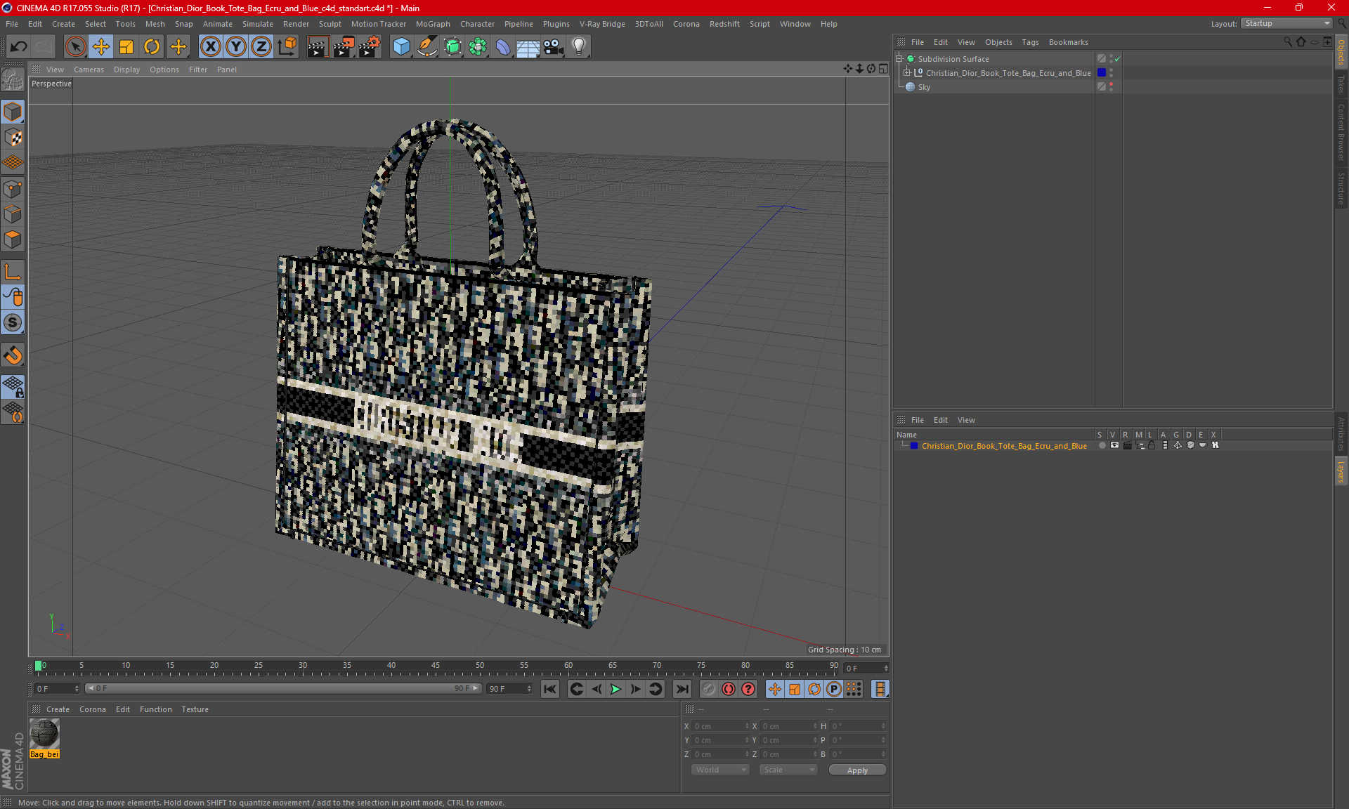Christian Dior Book Tote Bag Ecru and Blue is a high quality, photo real 3d model that will enhance detail and realism to any of your rendering projects. The model has a fully textured, detailed design that allows for close-up renders, and was originally modeled in 3ds Max 2020 and rendered with V-Ray. Renders have no postprocessing!
