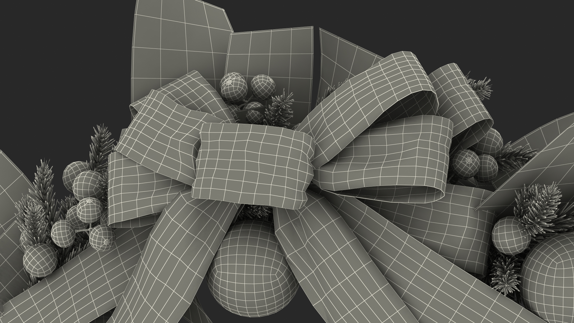 Christmas Cheer Wreath with Red Bow is a three-dimensional model of a decorated front door wreath which is traditIonal Winter Holiday celebration accessory.