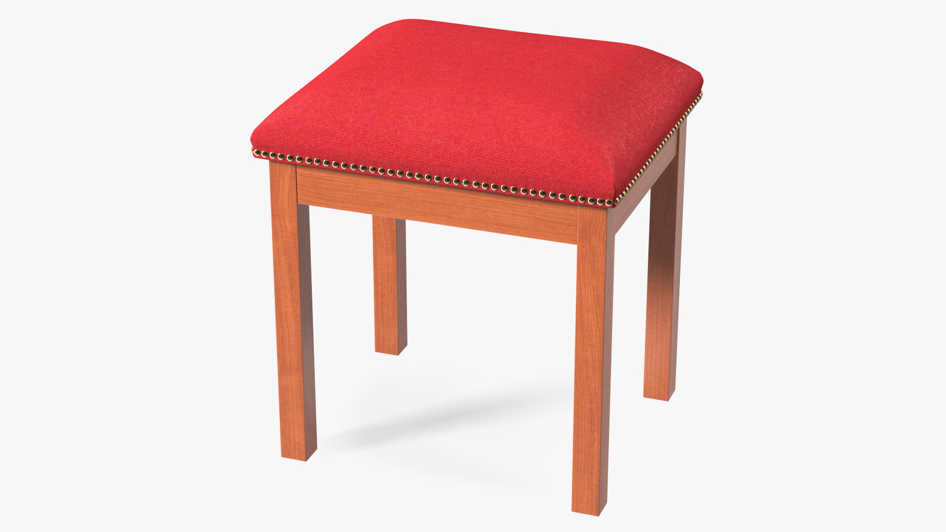 Wooden stool with red velvet fabric is a three-dimensional model of catholic church chair or tabouret as furniture element of interior design.