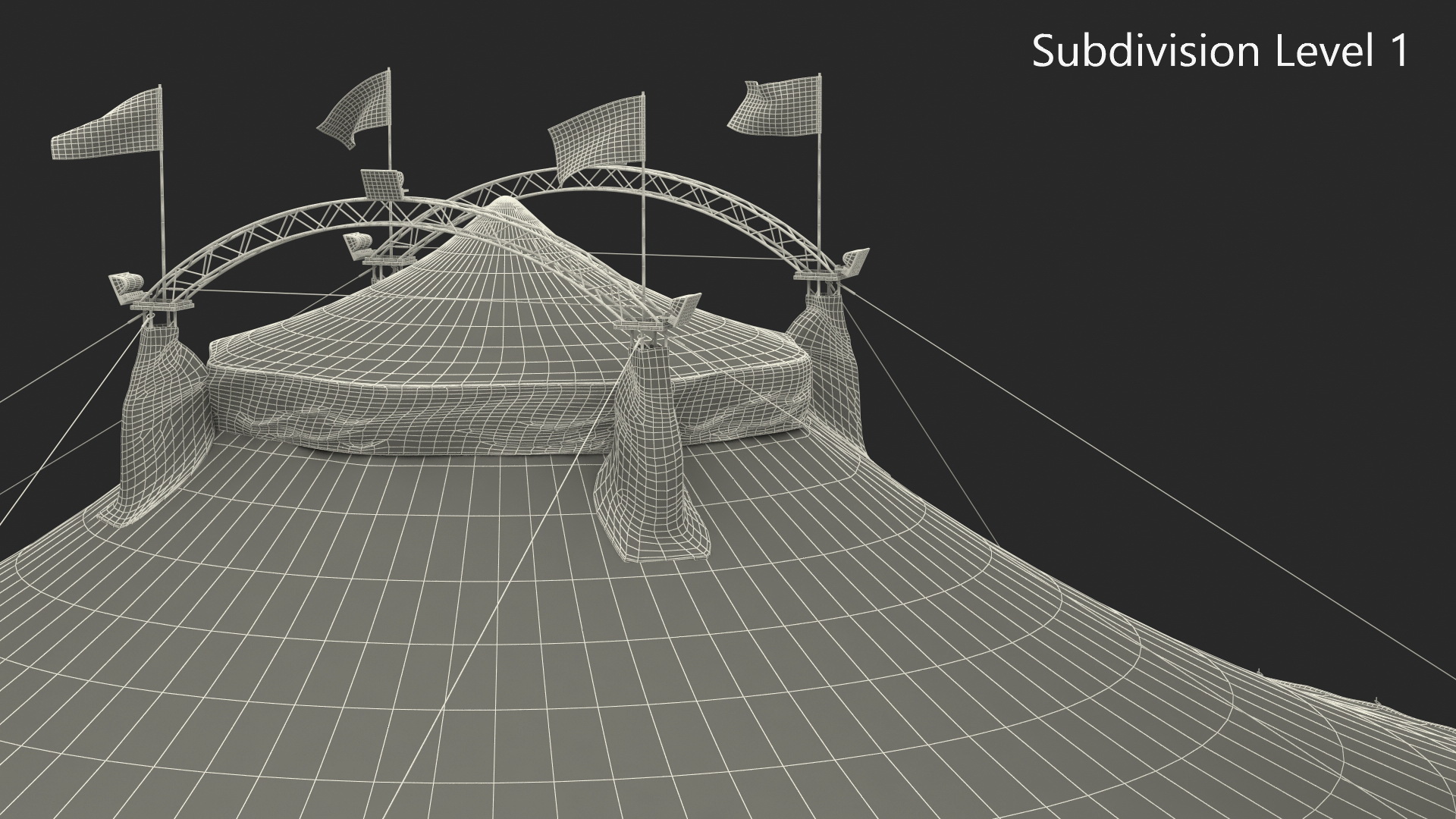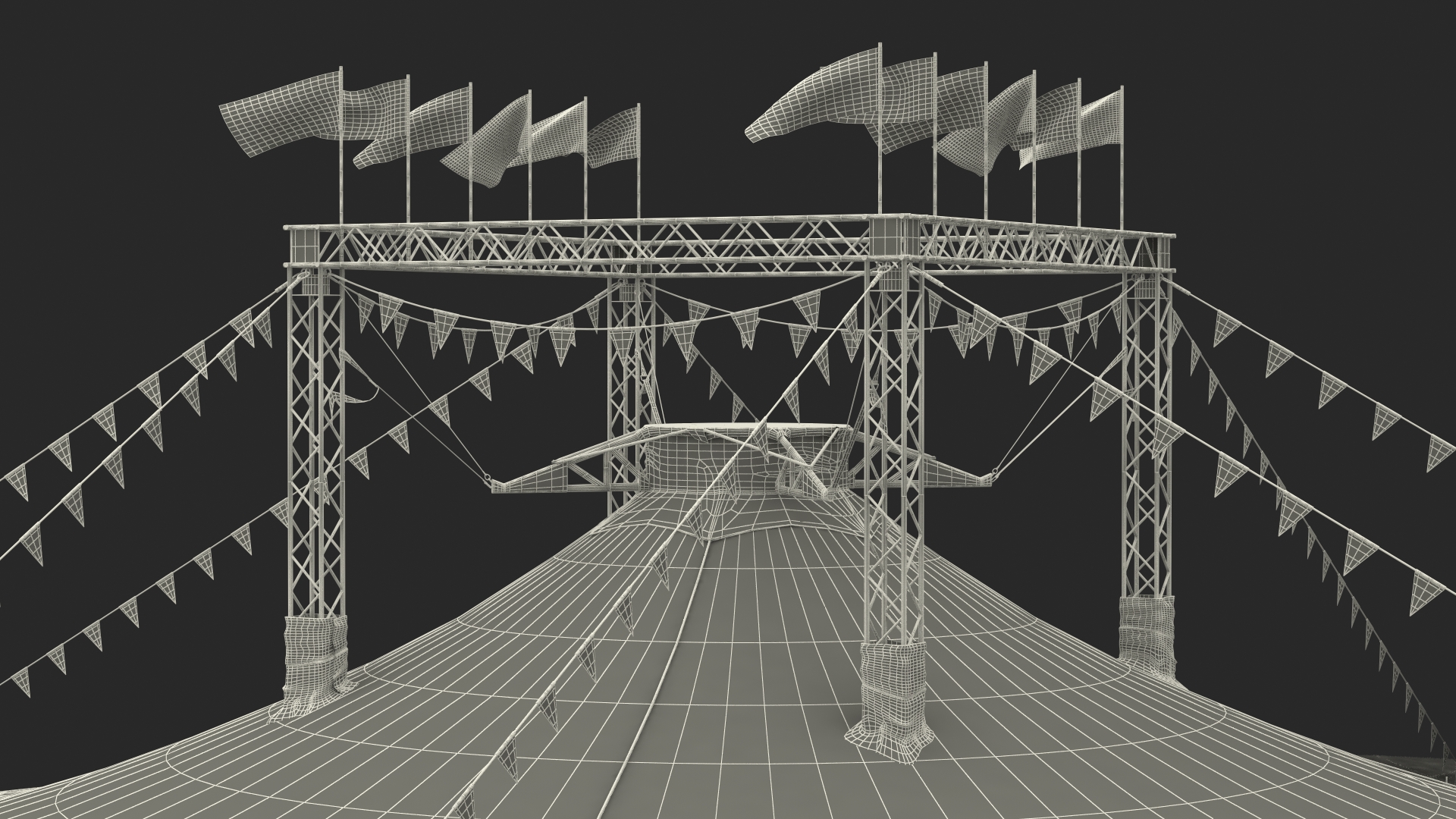 A large circus tent is a canvas-roofed structure designed for hosting circus performances. It features a high, peaked roof supported by a network of poles, ropes, and tension cables. This construction provides a spacious, open area for performances and seating, enabling flexibility for various acts. The tent’s durable canvas cover protects performers and audiences from weather while maintaining a classic, colorful aesthetic.