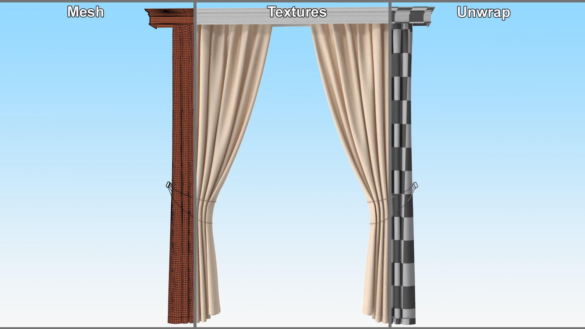 Classic Curtains with Valance is a high quality, photo real 3d model that will enhance detail and realism to any of your rendering projects. The model has a fully textured, detailed design that allows for close-up renders, and was originally modeled in 3ds Max 2020 and rendered with V-Ray. Renders have no postprocessing!