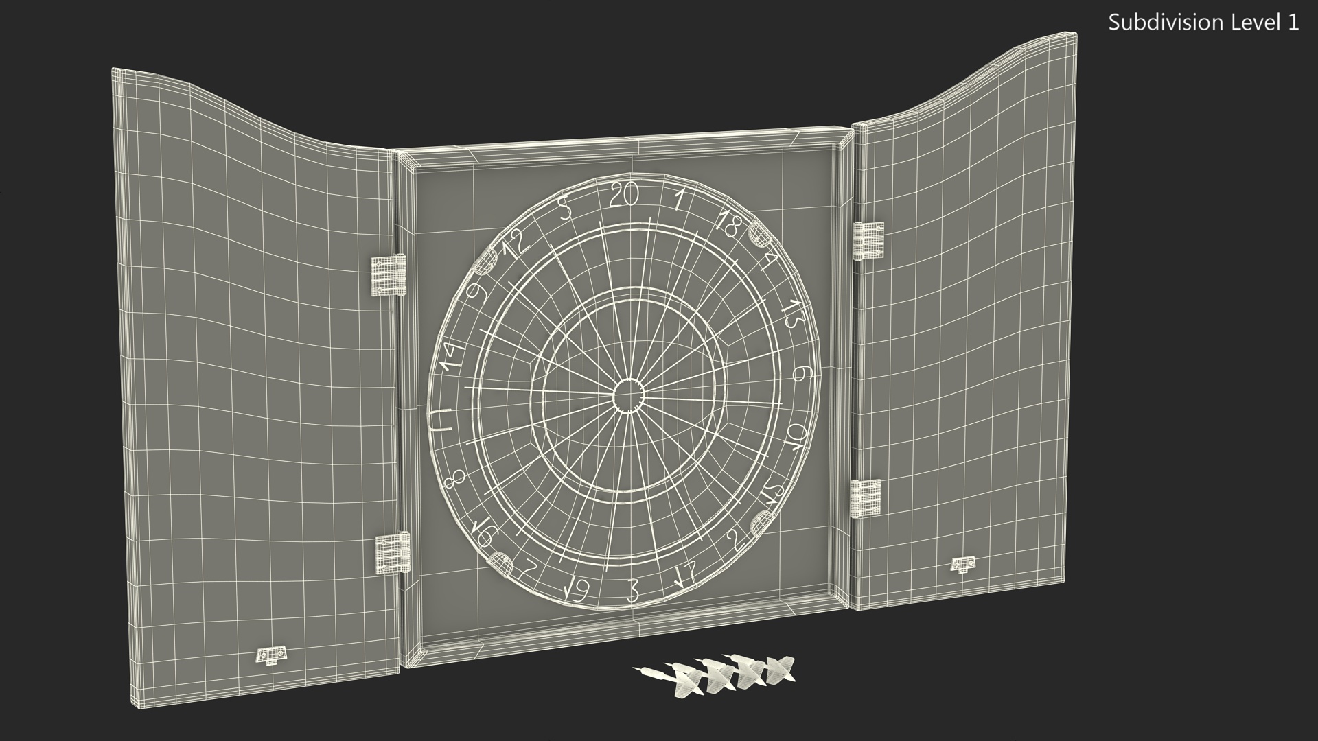 Classic Dartboard with Cabinet and Scoreboards is a three-dimensional model of foldable target for the game of darts, which is an folding indoor entertainment game accessory (equipment).