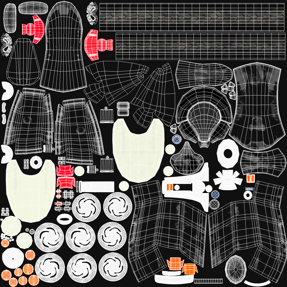 All textures and materials are included and mapped. (All colors can be easily modified.)