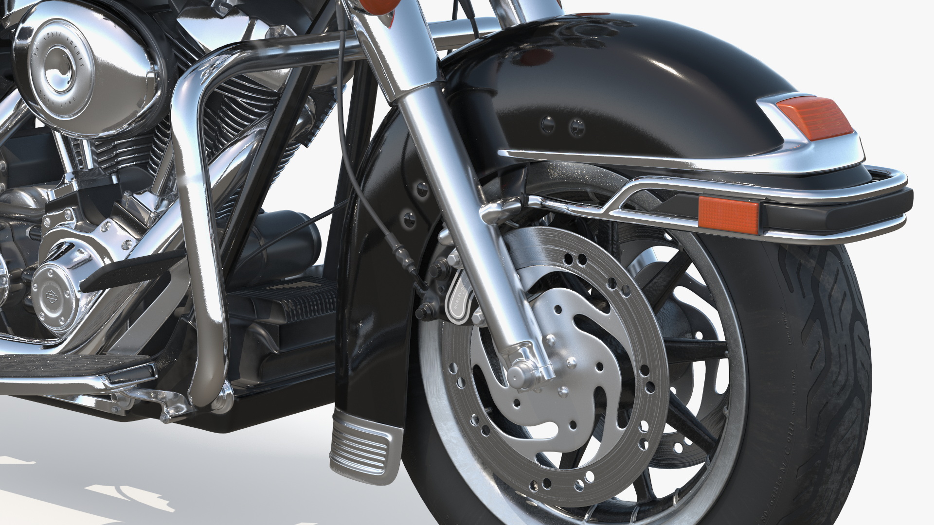 Classic Road King Motorcycle Black is a 3d model of a classic cruiser motorcycle, often referred to as the Road King, designed with sleek and stylish details, showcasing a timeless design in black.