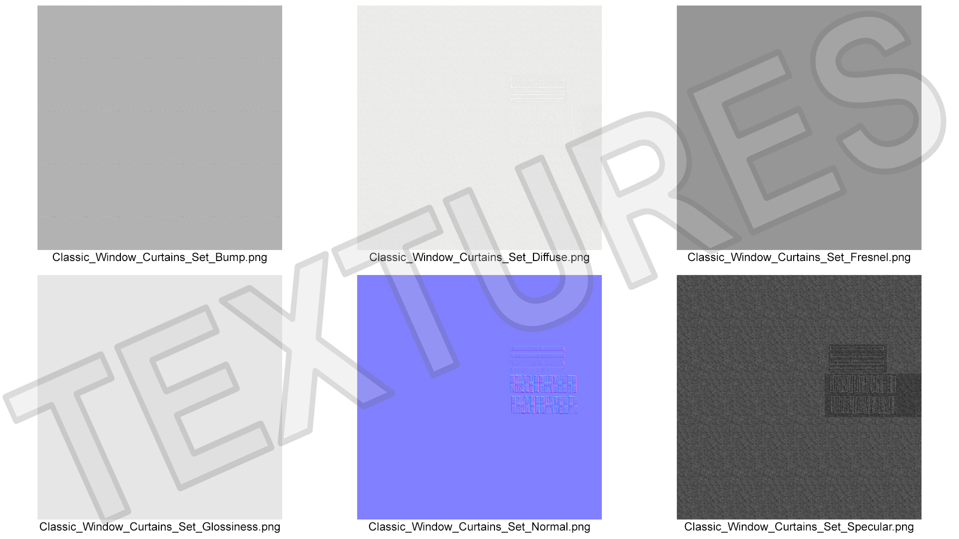 Classic Window Curtains Set is a three-dimensional model of building room window accessory which is a fabric two curtain set, and which designed to create functional and stylish room space.