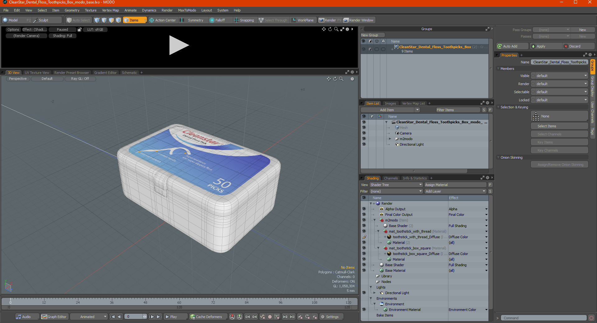 CleanStar Dental Floss Toothpicks Box is a high quality, photo real 3d model that will enhance detail and realism to any of your rendering projects. The model has a fully textured, detailed design that allows for close-up renders, and was originally modeled in 3ds Max 2020 and rendered with V-Ray. Renders have no postprocessing!