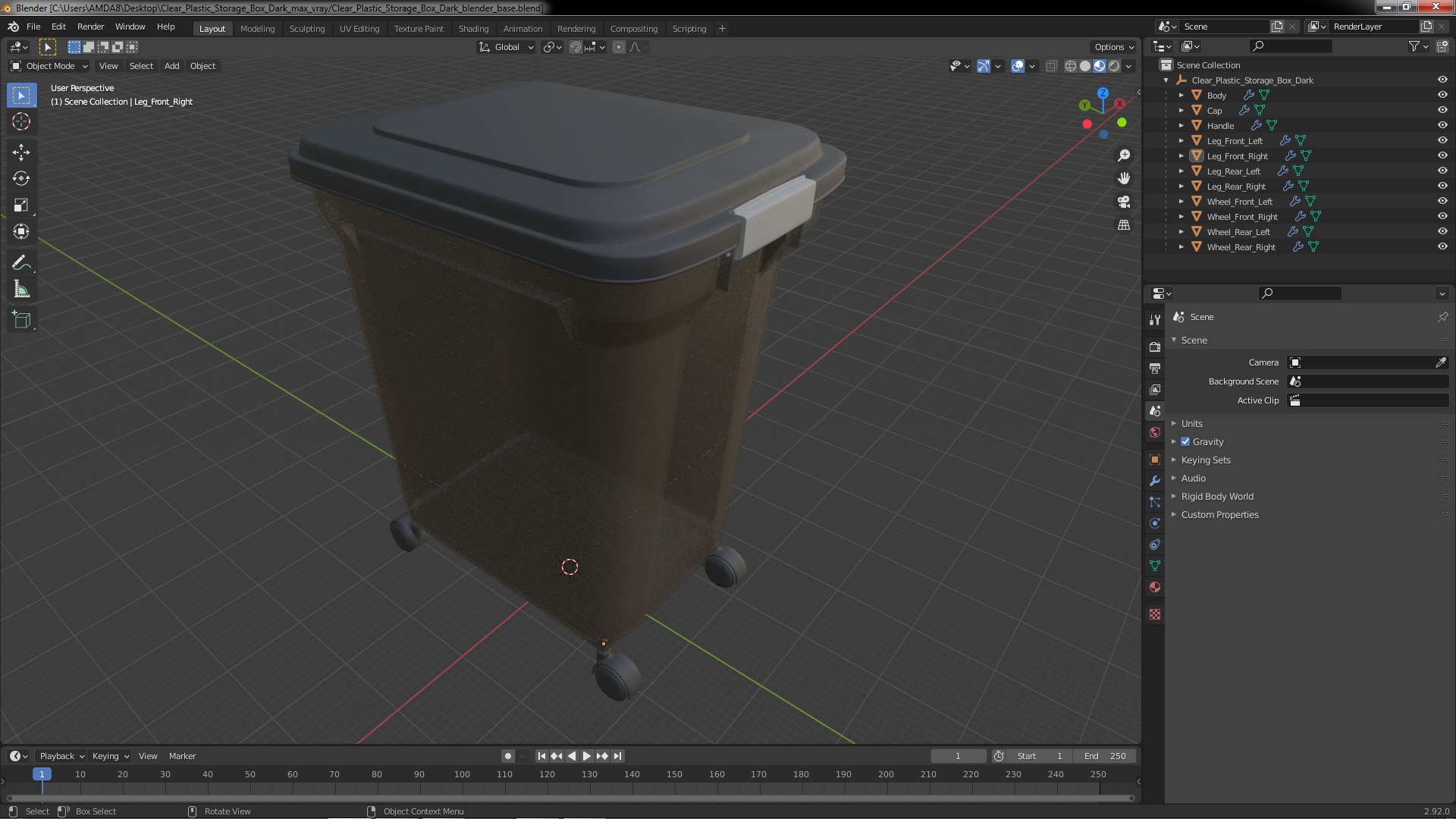 Clear Plastic Storage Box Dark is a high quality, photo real 3d model that will enhance detail and realism to any of your rendering projects. The model has a fully textured, detailed design that allows for close-up renders, and was originally modeled in 3ds Max 2020 and rendered with V-Ray. Renders have no postprocessing!