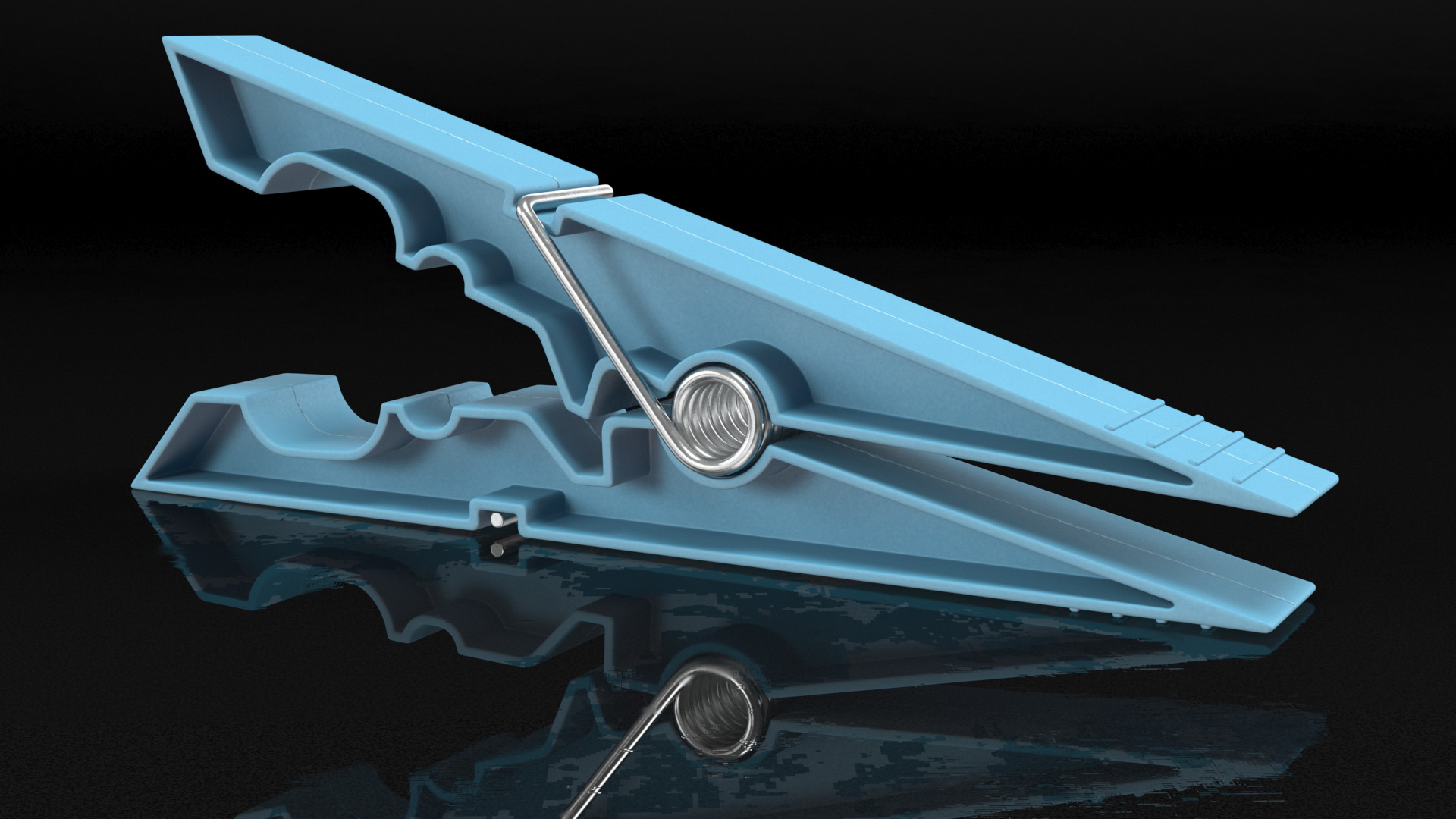 Clothespin Blue Pressed is a three-dimensional model of a common, classic, clip-like, spring-loaded fastening device (fastener), which designed to launder clothes hang up for drying on rope etc..