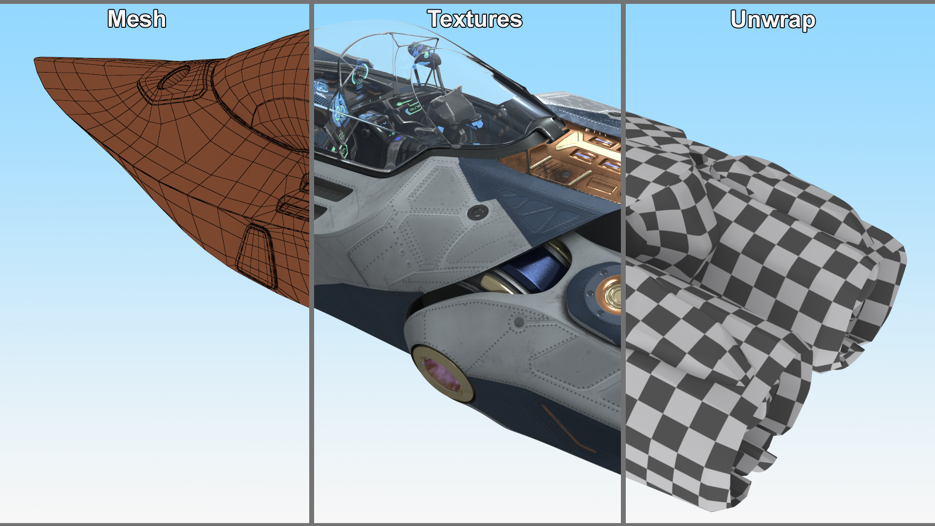 Cockpit Fighter is a high quality, photo real 3d model that will enhance detail and realism to any of your rendering projects. The model has a fully textured, detailed design that allows for close-up renders, and was originally modeled in 3ds Max 2020 and rendered with V-Ray. Renders have no postprocessing!