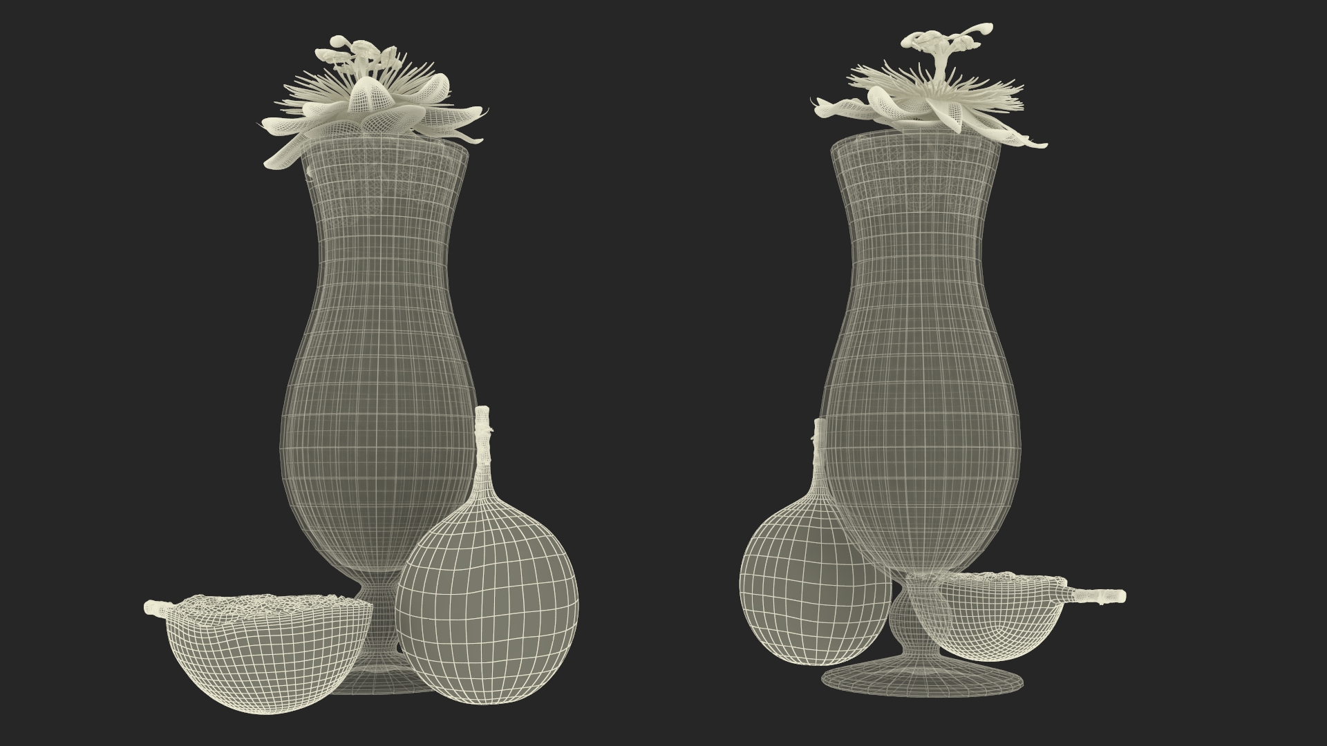 Cocktail Garnished with Passion Fruit and Passion Flower is a three-dimensional model of alcohol type cocktail that is garnished with passion fruit and passion flower, and that is a visually vibrant famous drink.