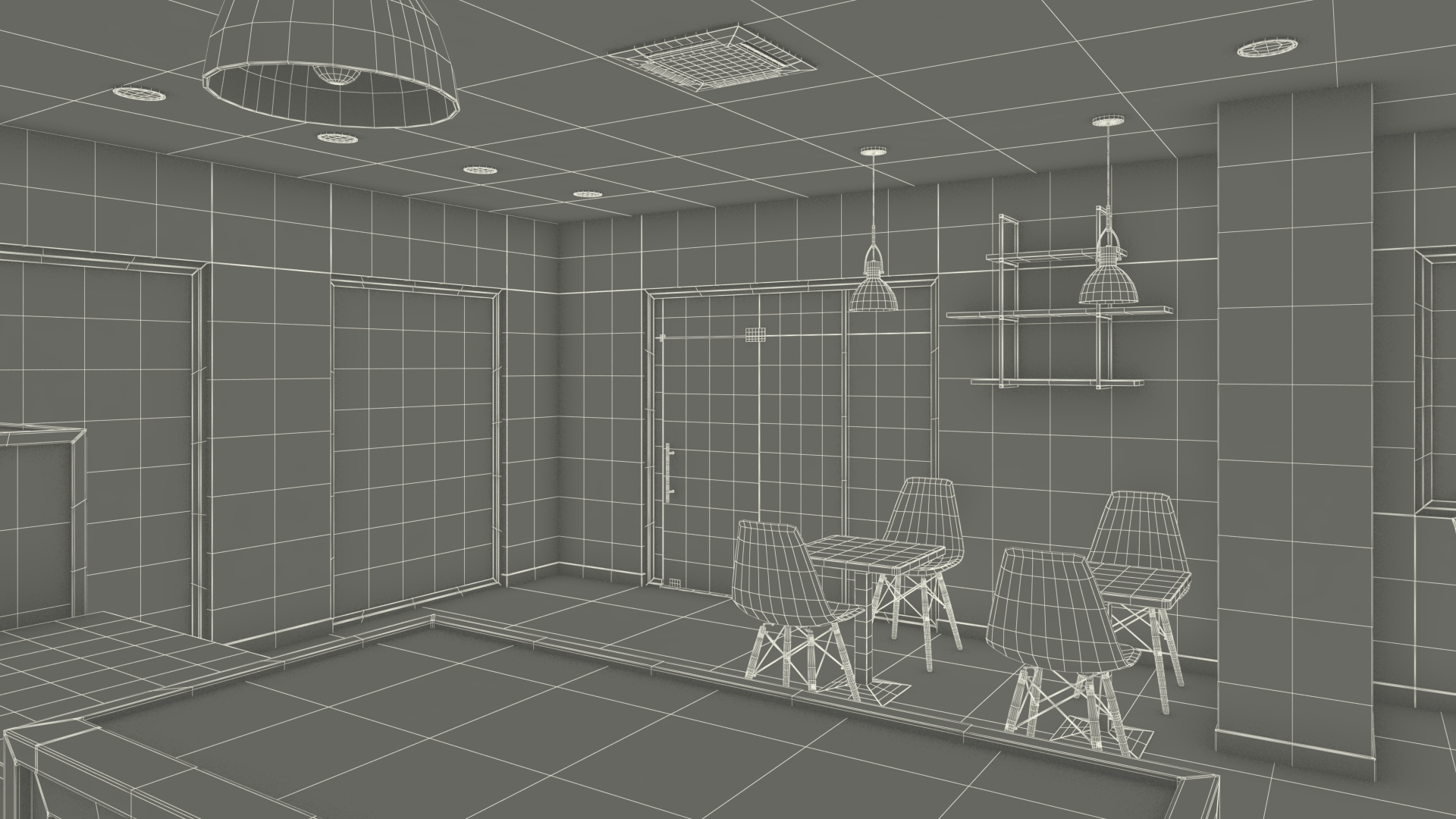 Coffee Shop Interior is a three-dimensional model of coffee shop interior which features a cozy ambiance with comfortable seating arrangements, warm lighting, and a welcoming atmosphere.