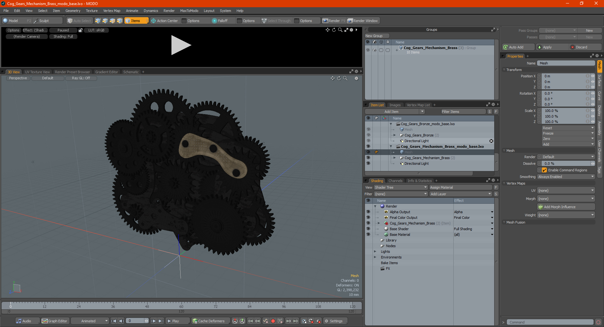 Cog Gears Mechanism Brass is a high quality, photo real 3d model that will enhance detail and realism to any of your rendering projects. The model has a fully textured, detailed design that allows for close-up renders, and was originally modeled in 3ds Max 2020 and rendered with V-Ray. Renders have no postprocessing!