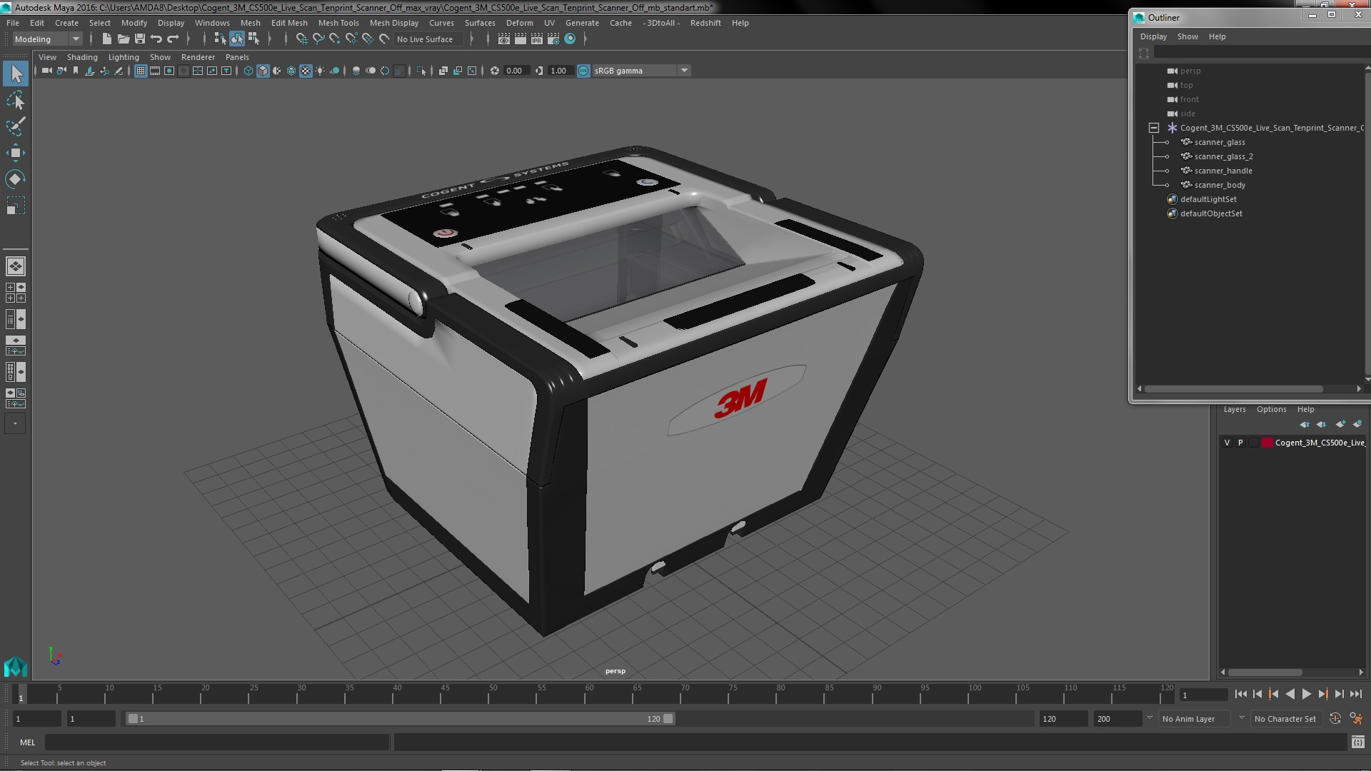 Cogent 3M CS500e Live Scan Tenprint Scanner Off is a high quality, photo real 3d model that will enhance detail and realism to any of your rendering projects. The model has a fully textured, detailed design that allows for close-up renders, and was originally modeled in 3ds Max 2020 and rendered with V-Ray. Renders have no postprocessing!