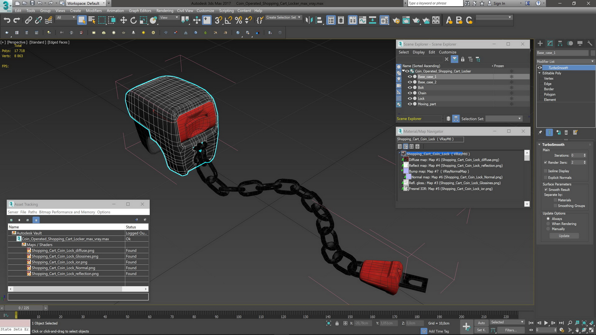 Coin Operated Shopping Cart Locker is a high quality, photo real 3d model that will enhance detail and realism to any of your rendering projects. The model has a fully textured, detailed design that allows for close-up renders, and was originally modeled in 3ds Max 2020 and rendered with V-Ray. Renders have no postprocessing!