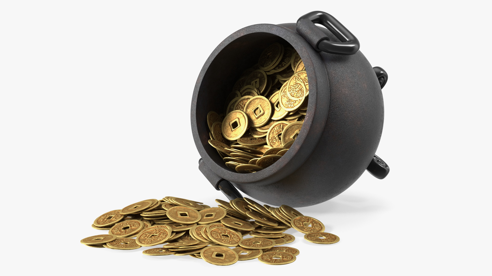 Coins Falling Out from Pot is a 3D model of gold metal treasure or artifact from the antique Chinese civilization.
