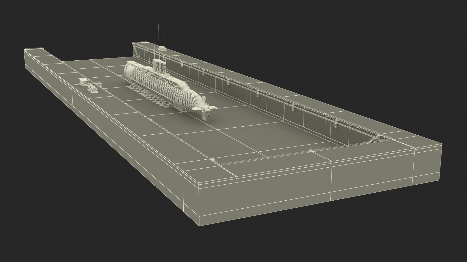 Combat Semi Heavy Submarine in Dry Dock is a 3d model of type of military submarine that is designed for various combat operations and is currently in a dry dock facility for maintenance, repairs, or upgrades.
